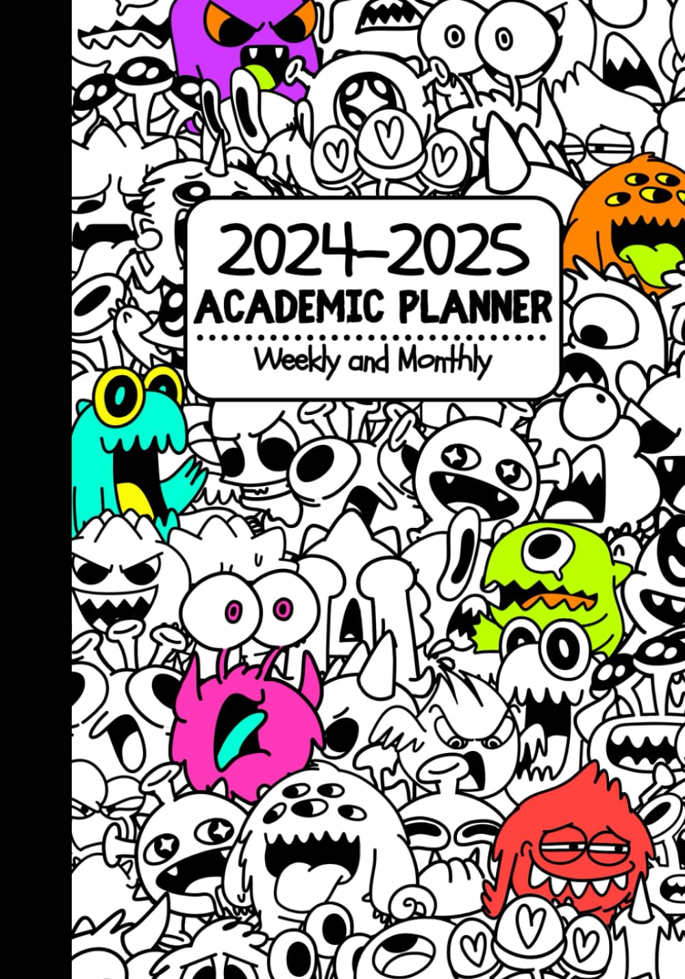 18-month academic planner covering July 2024 to December 2025Cover features cute yet creepy monsters that can be colored in any wayInterior pages are also designed with terrifyingly cute monster illustrations of different shapes and sizesYear-at-a-glance pages for 2024-2025 and a holidays page listing major holidaysClass schedule page for two semestersMonthly calendar spread for 18 months with motivational saying each monthSnapshot page for each month to write goals, important events, notes, and tasksProjects and exams page for each month to keep track of upcoming deadlinesTwo-page weekly spread to write daily schedule, tasks, homework, or notesAdditional “Notes & Ideas” pages in dot grid format and “Doodle for Fun” pages at the end of the plannerConvenient and spacious 7″ x 10″ size, 247 black and white pages, full-color matte finish coverChoose between lightweight paperback or durable hardcover