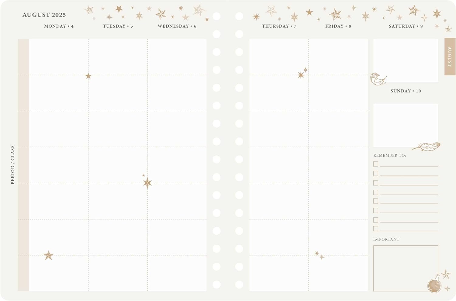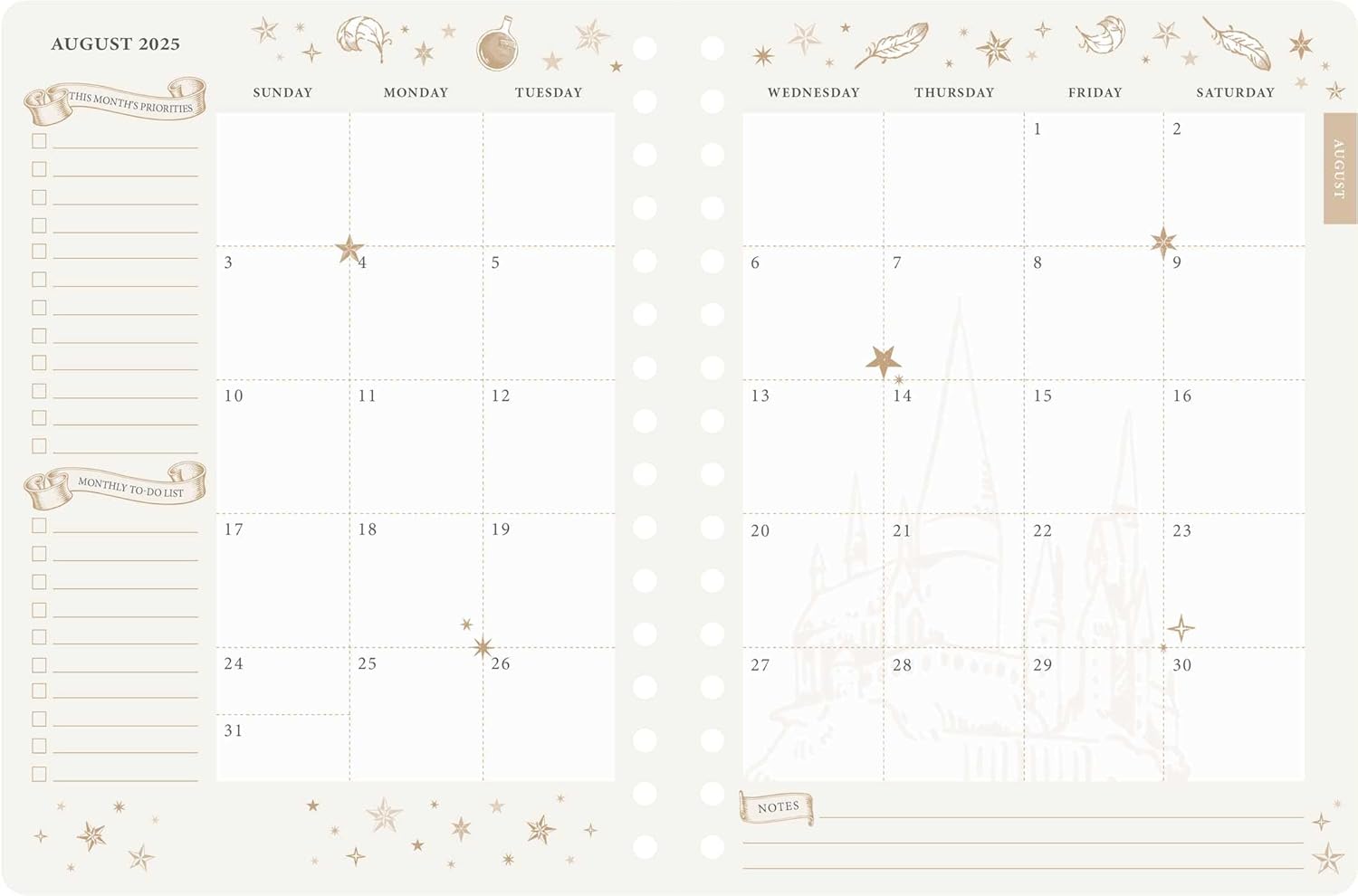 Ready yourself for the new school year and achieve Hermione Granger™ levels of organization with this Hogwarts™–inspired 2025-2026 (August-July) dated student planner.