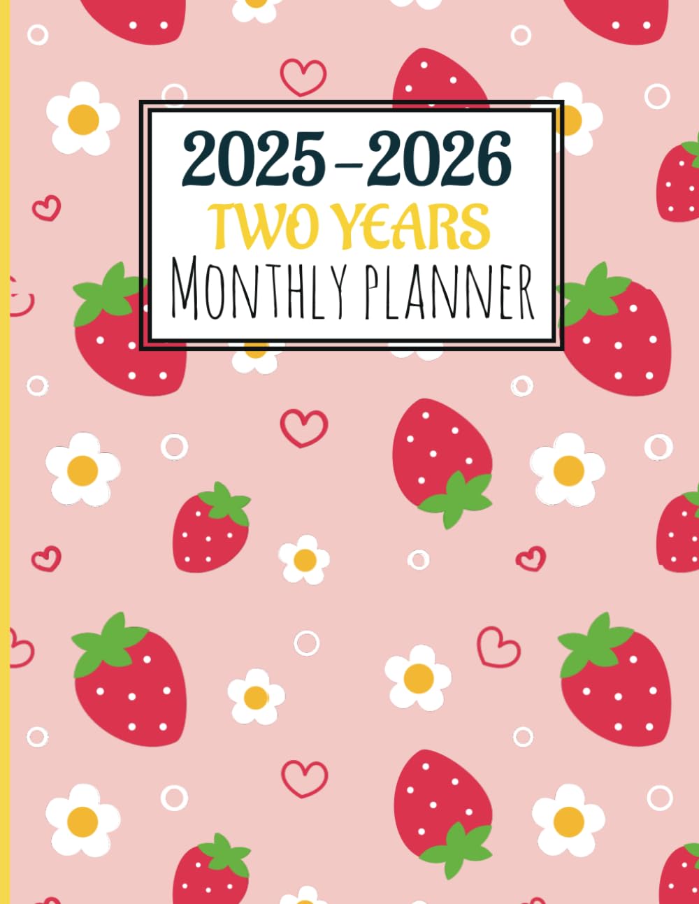 Monthly Planner 2025-2026 with Strawberry cover:The Week Start on Monday This Monthly Calendar Planner for the Next Two Years is ideal for use as a personal notepad, journal, or diary. You may use it to scribble down notes and ideas, as well as create objectives, key dates, or deadlines.