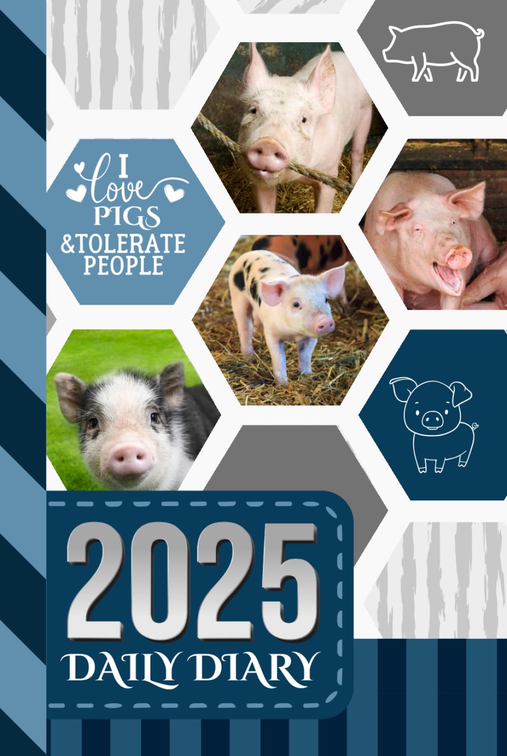 2025 Daily Diary: Hardcover / One Page Per Day / 6×9 Dated Organizer With Hourly Planner – 1 Hour Time Slots / To Do List / Notes Section / Scheduling Gift / Pig Lover – Farm Animal Theme Cover