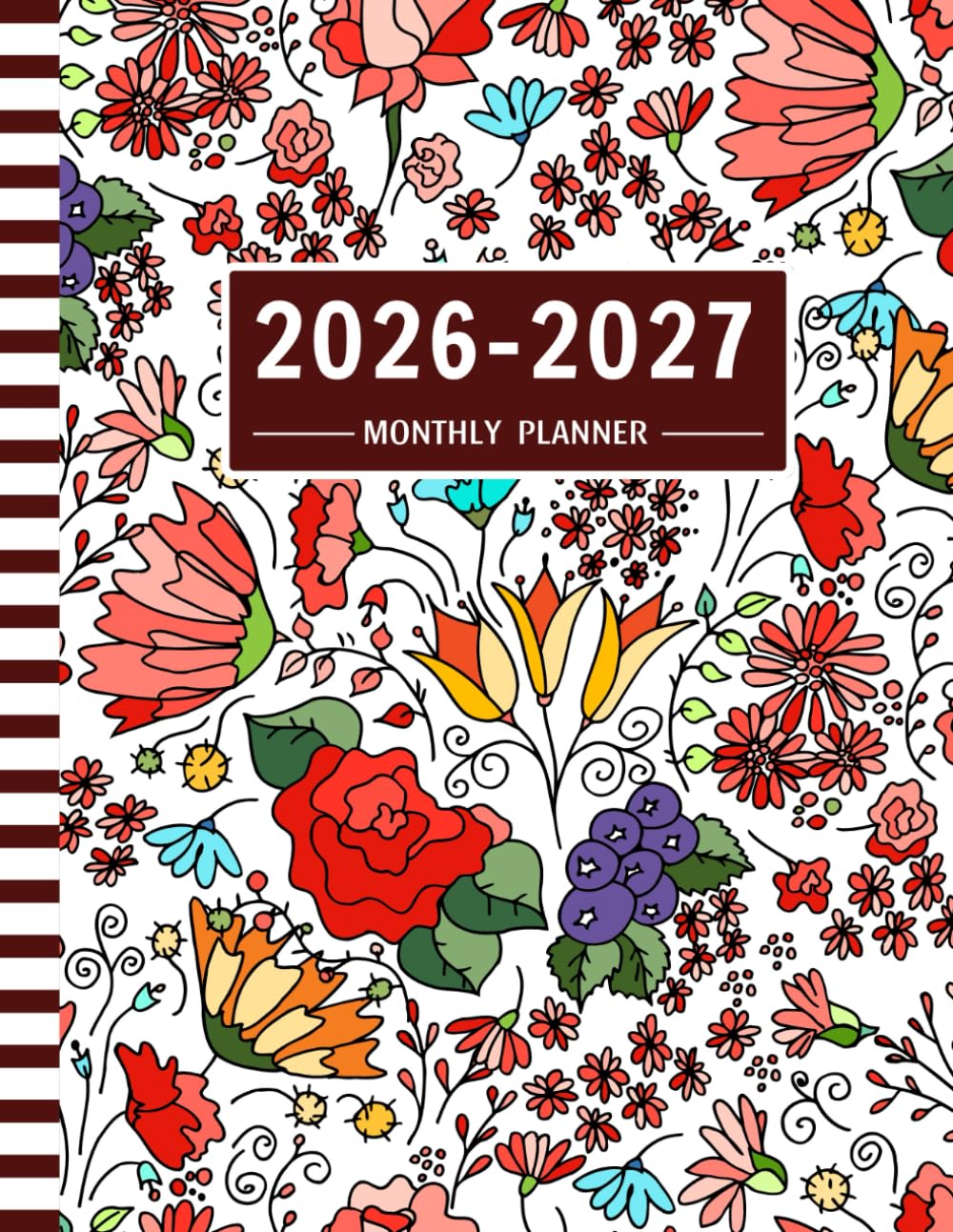 Planner Offers:Jan 2026-Dec 2027 Weekly Monthly Planner.2026 And 2027 Year Planner Overview.One Month Per Each Two Page Spread.Contact Names, Password Log And Birthday Log.Note Pages At The End Of Each Month.Black And White Interior With White PaperPerfectly Sized At 8.5 Inches By 11 Inches.Matte Finish Cover- Paperback.