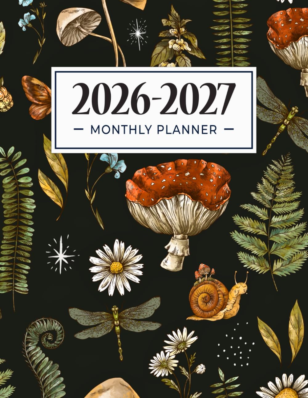 Vintage Forest and Mushroom Cover: A unique, nature-inspired design offering a timeless and calming aesthetic.Yearly Goals Pages: Structured pages to outline goals with actionable steps and deadlines — ideal for both personal and professional planning.Extra Notes Pages: Two lined pages between each month provide space for to-do lists, reflections, monthly goals, or important reminders.Additional Log Pages: Includes dedicated sections for contacts and birthdays to keep important dates and information organized.Spacious and Practical Size: 8.5” x 11” format offers generous writing space while remaining lightweight and easy to carry.Minimalist Interior Design: Clean, uncluttered layout printed on high-quality paper — perfect for pens, pencils, and highlighters.Made in the USAA Thoughtful Gift Choice: Suitable for gifting to family, friends, coworkers — or as a meaningful tool for personal use. Ideal for New Year, birthdays, or special occasions.