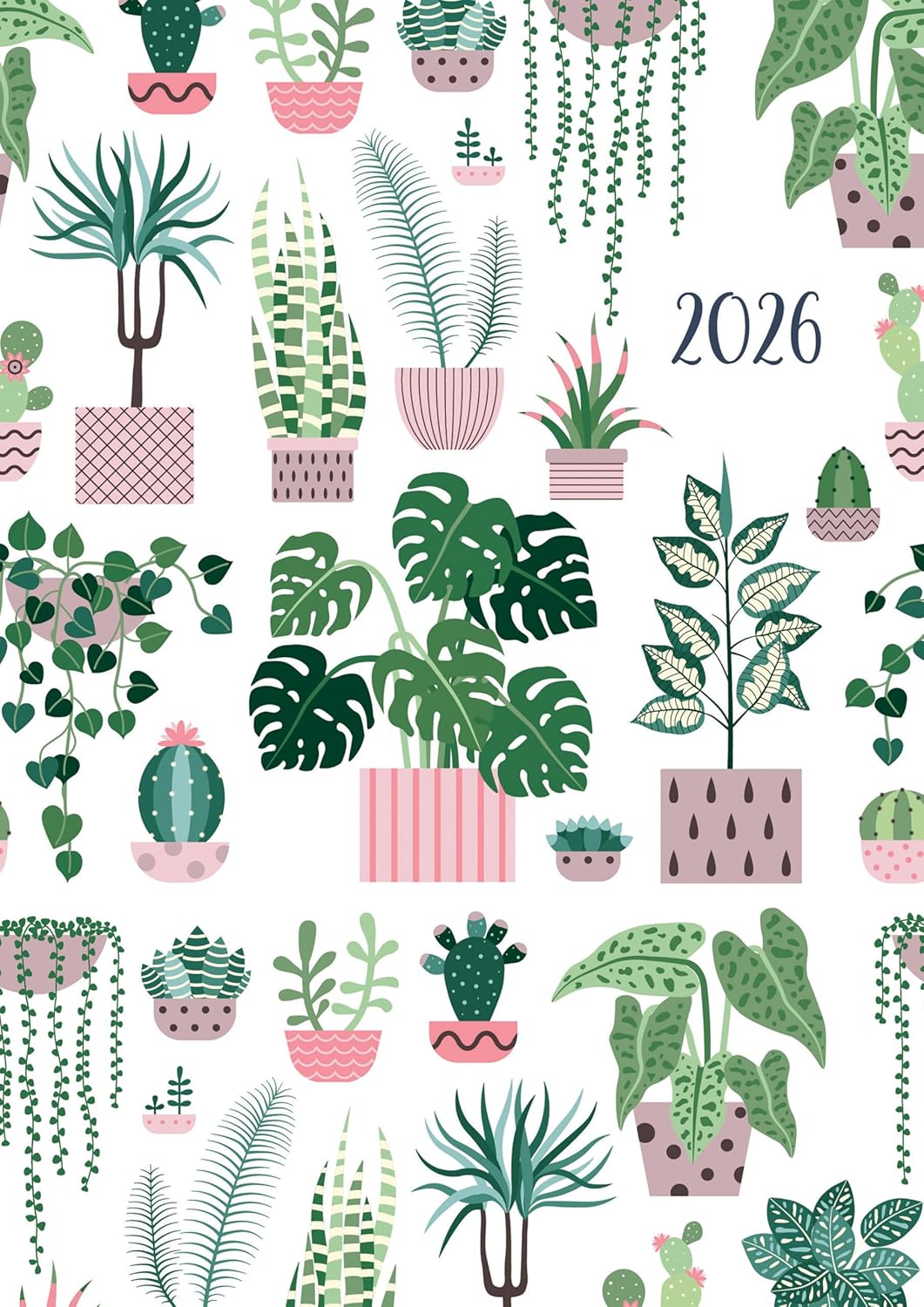 2026 A5 Padded Diary – Urban Garden, Includes ribbon marker. Week to view, Size: 8.5 x 6 x 0.8 inches