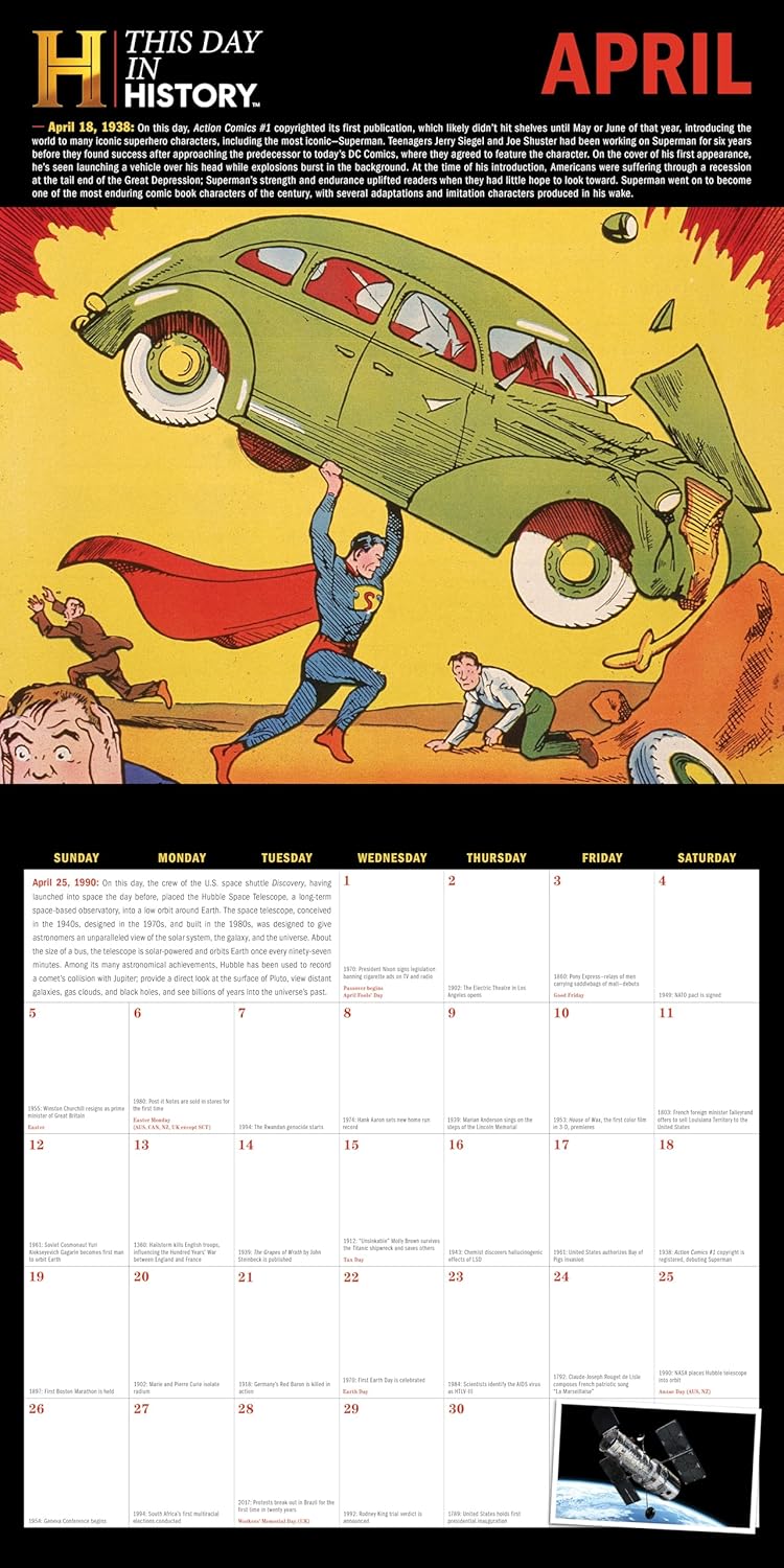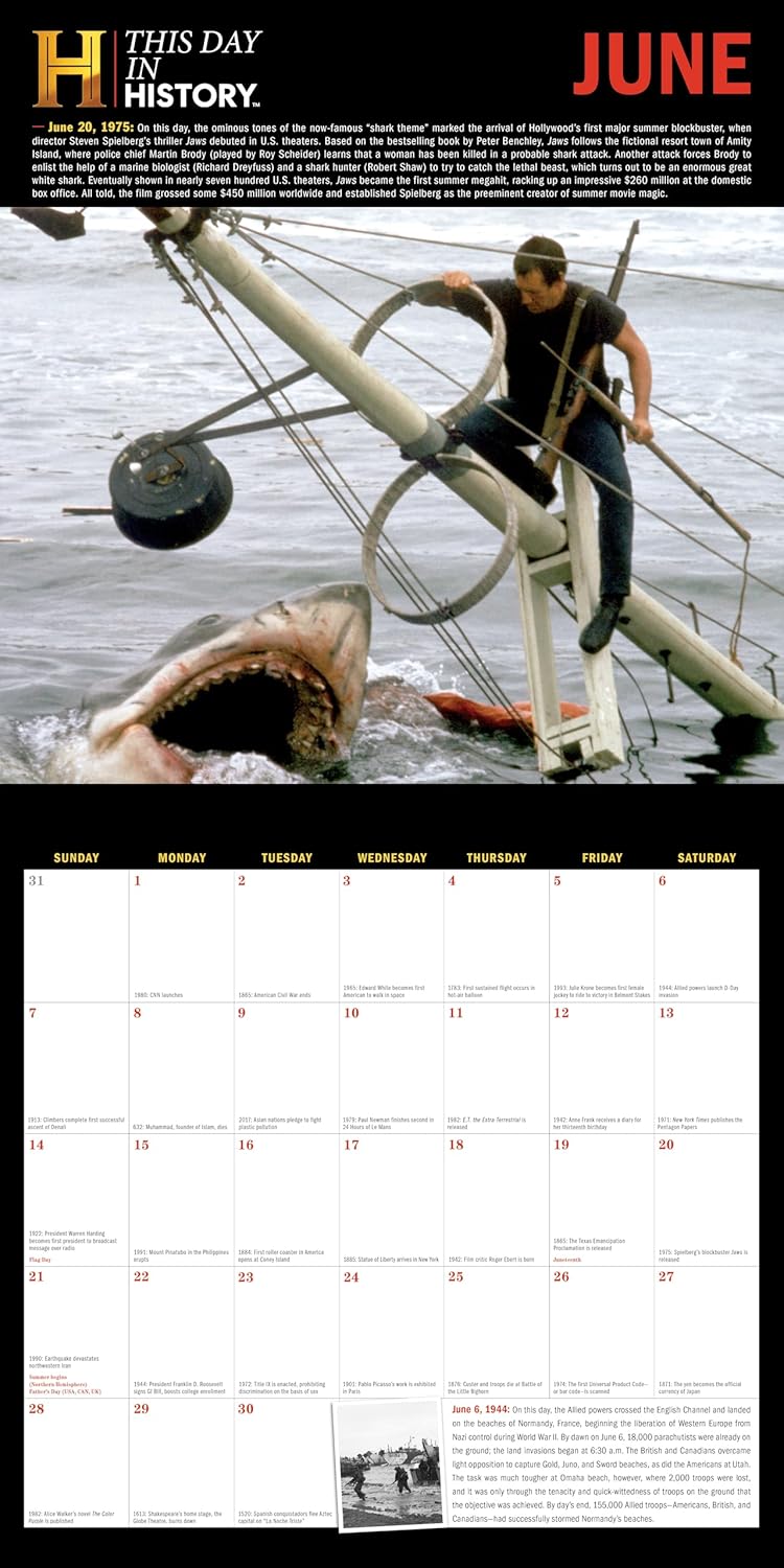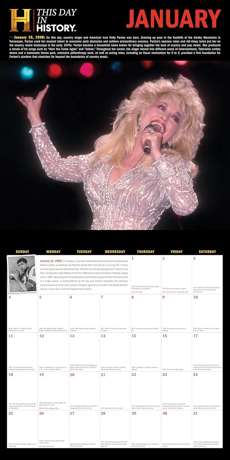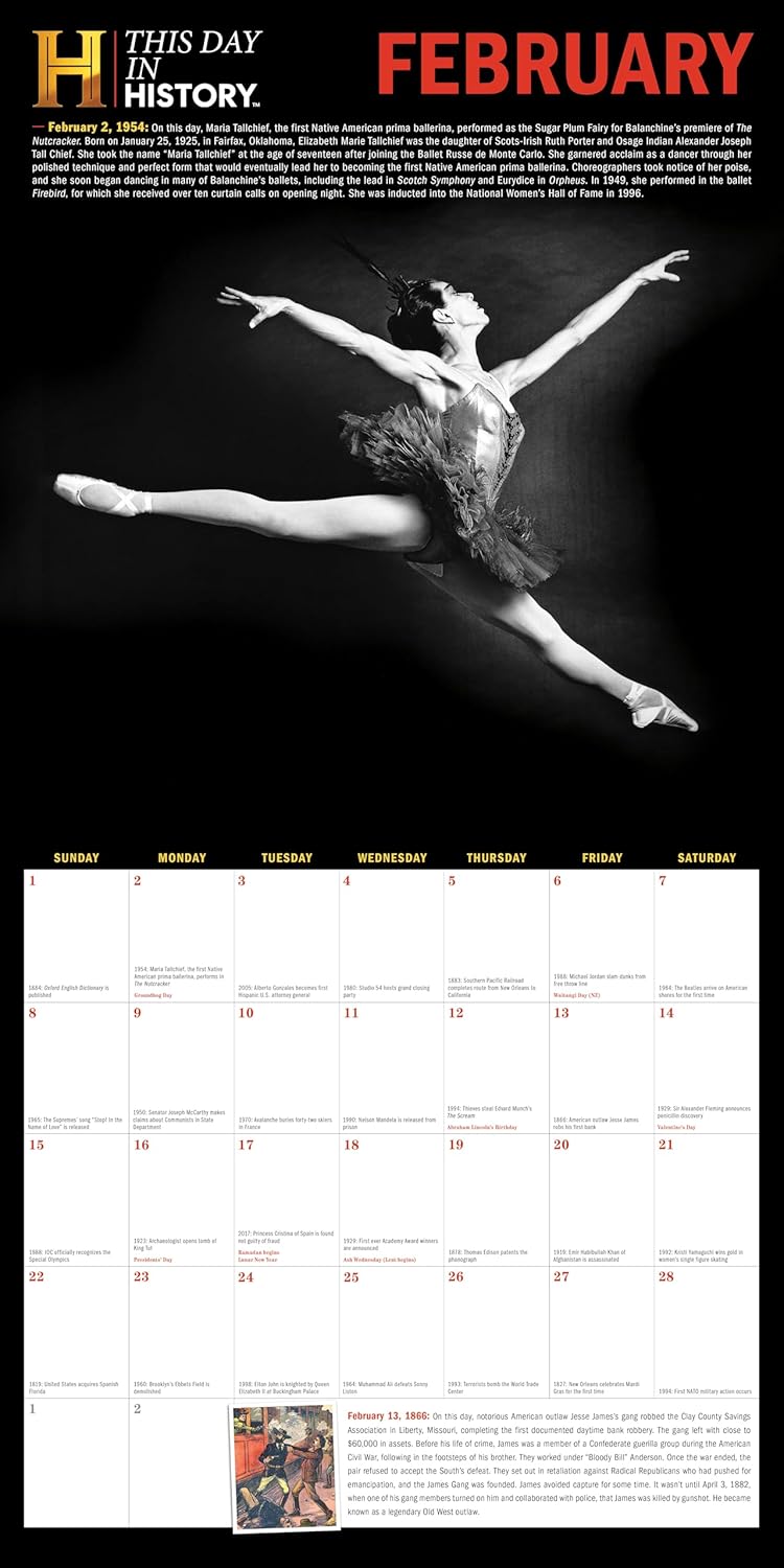 From one of the most relied-upon and best-respected sources of historical material, HISTORY™, comes a yearlong record of extraordinary happenings throughout the ages! Packed full of influential events, historic accomplishments, inspiring people and dynamic photography, this 2026 history wall calendar assembles 365 days of interesting facts from early civilization to the 21st century.