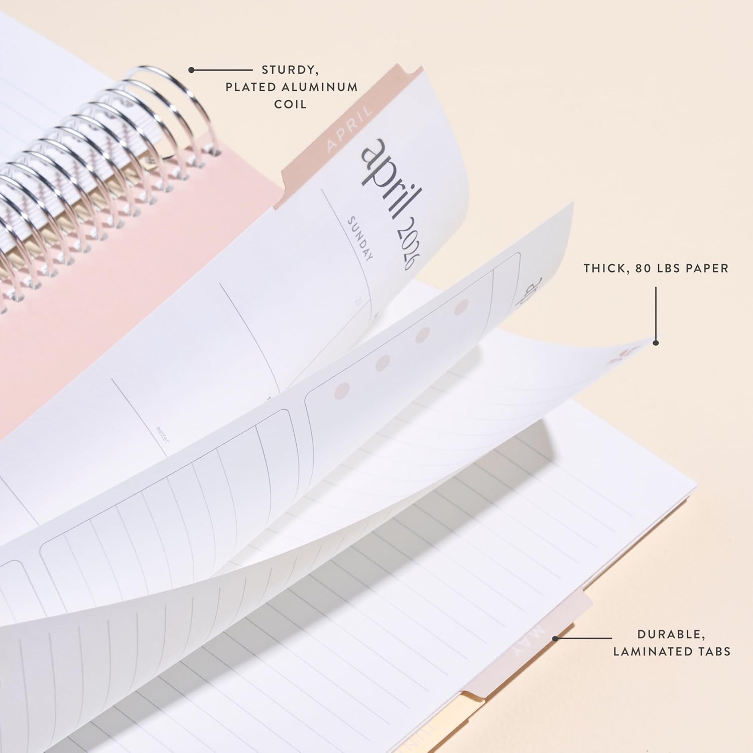 Designed for monthly scheduling, goal setting, note-taking, and light planning, the Erin Condren Coiled Monthly Planner is your perfect tool for staying on top of your schedule all year long. Whether you’re managing work projects, tracking personal goals, or keeping your home life in order, this monthly planner 2026 provides a structured yet flexible layout to fit your needs. Available in two sizes, 7″ x 9″ for portability or 8.5″ x 11″ for extra writing space, this 2026 calendar monthly planner ensures you have ample room to map out your months, jot down important notes, and track productivity effortlessly. The 12-month, dated format offers monthly two-page calendar spreads, mini month overviews, and inspirational quotes to keep you motivated throughout the year. With a dated and tabbed calendar, navigating through your schedule has never been easier. Built for durability and style, this planner features a sturdy laminated cover and a plated aluminum coil, making it strong enough to withstand daily use while maintaining a sleek, polished look. One of its standout features is the functional layout with built-in flexibility. Each month includes 10 lined note pages, giving you space to track goals, jot down reminders, or plan upcoming events. This planner does not include vellum, stickers, bookmarks, perpetual calendar, folder, sheet protector, or pouch. Perfect for professionals, students, entrepreneurs, and anyone who loves structured organization, this planner provides everything you need to plan, track, and achieve your goals all year long. Stay ahead, stay organized, and make every month count with the Erin Condren Coiled Monthly Planner!