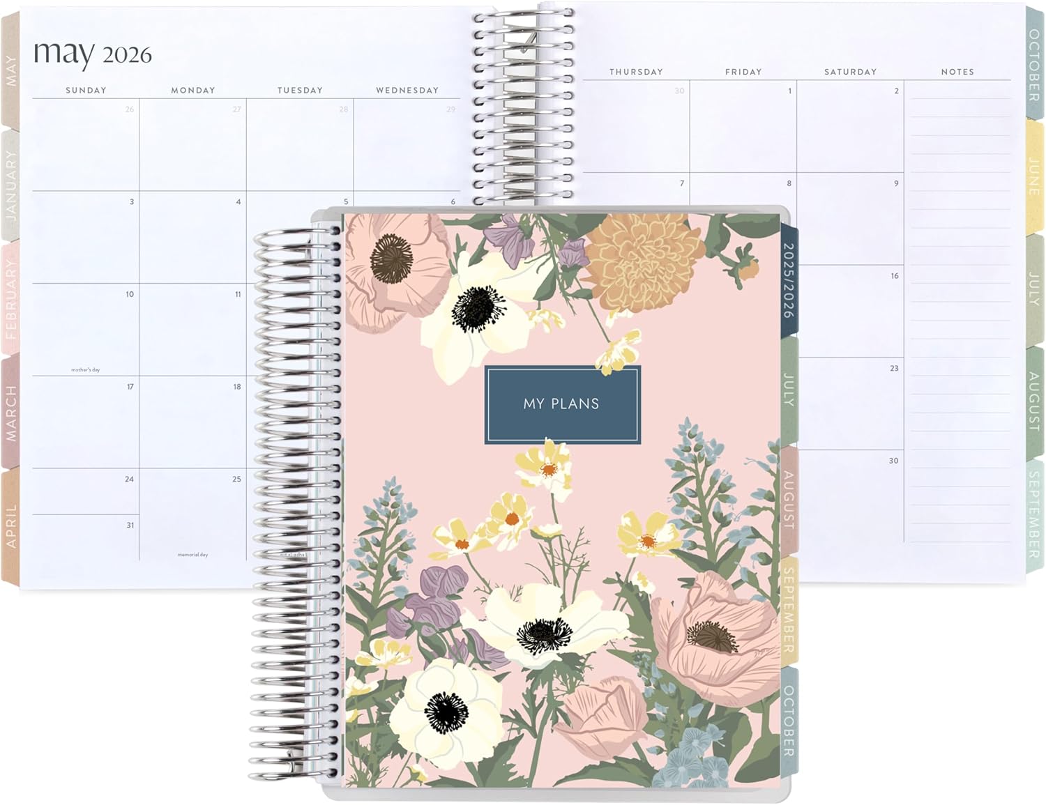 7×9 Coiled Monthly Planner (January 2026 – December 2026) – Bouquet classic cover, Pastel Minimal theme, platinum coil
