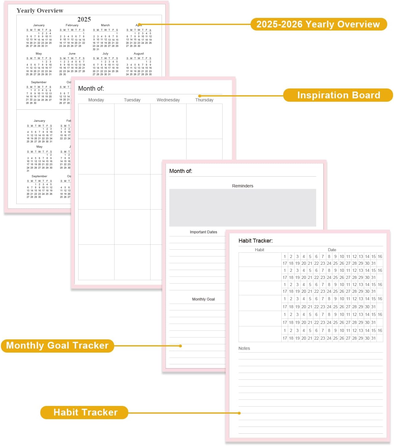 Engineered for Success — More than just a calendar, this Undated College Planner includes habit trackers, grade logs, and progress reviews—your all-in-one tool for academic achievement.
