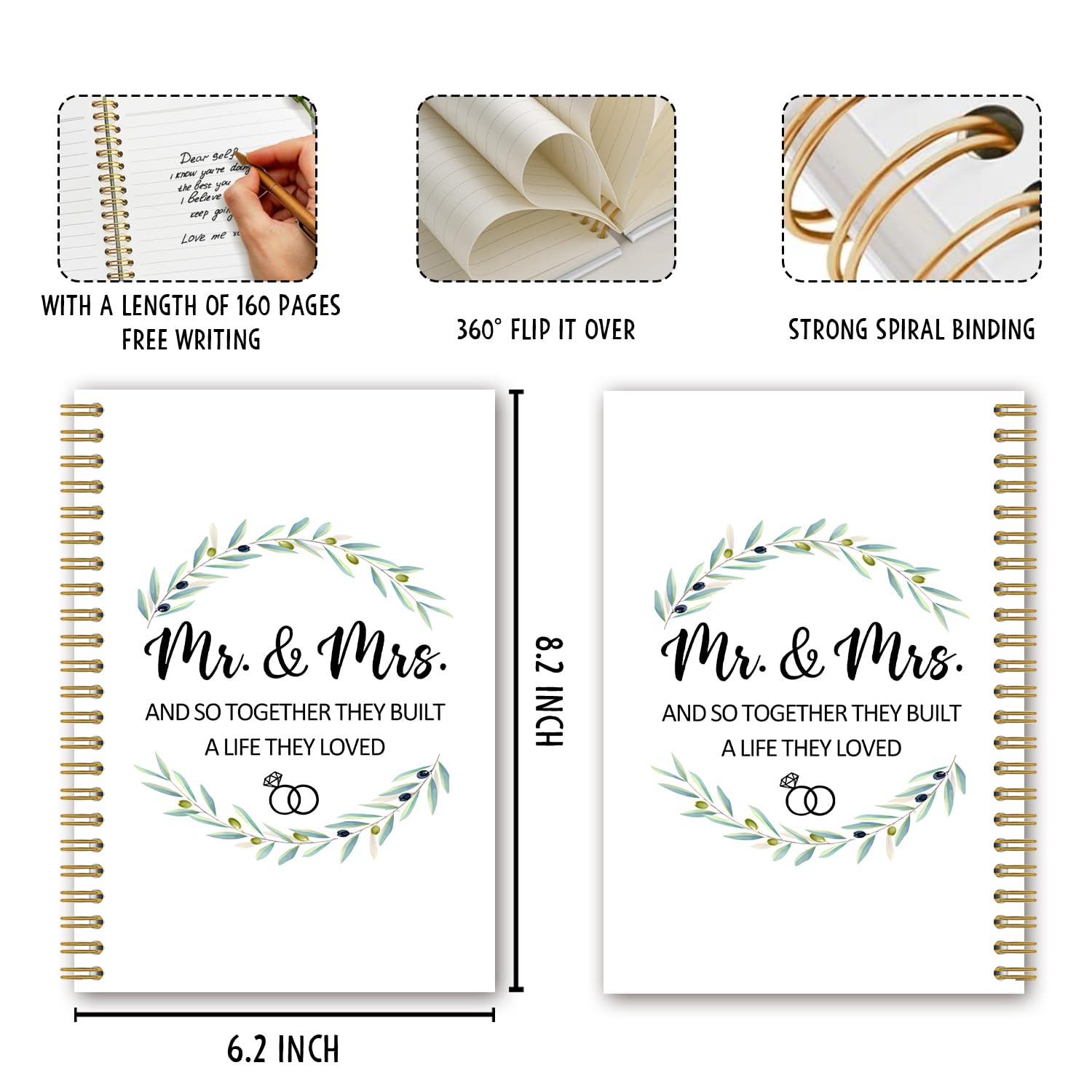 BEHIFL Mr and Mrs Wedding Gifts Spiral Notebook, Engagement Marriage Gifts for Couples Journal, And So Together They Built a Life They Loved Wedding Notebook Journal, 5.5×8.3 Inches