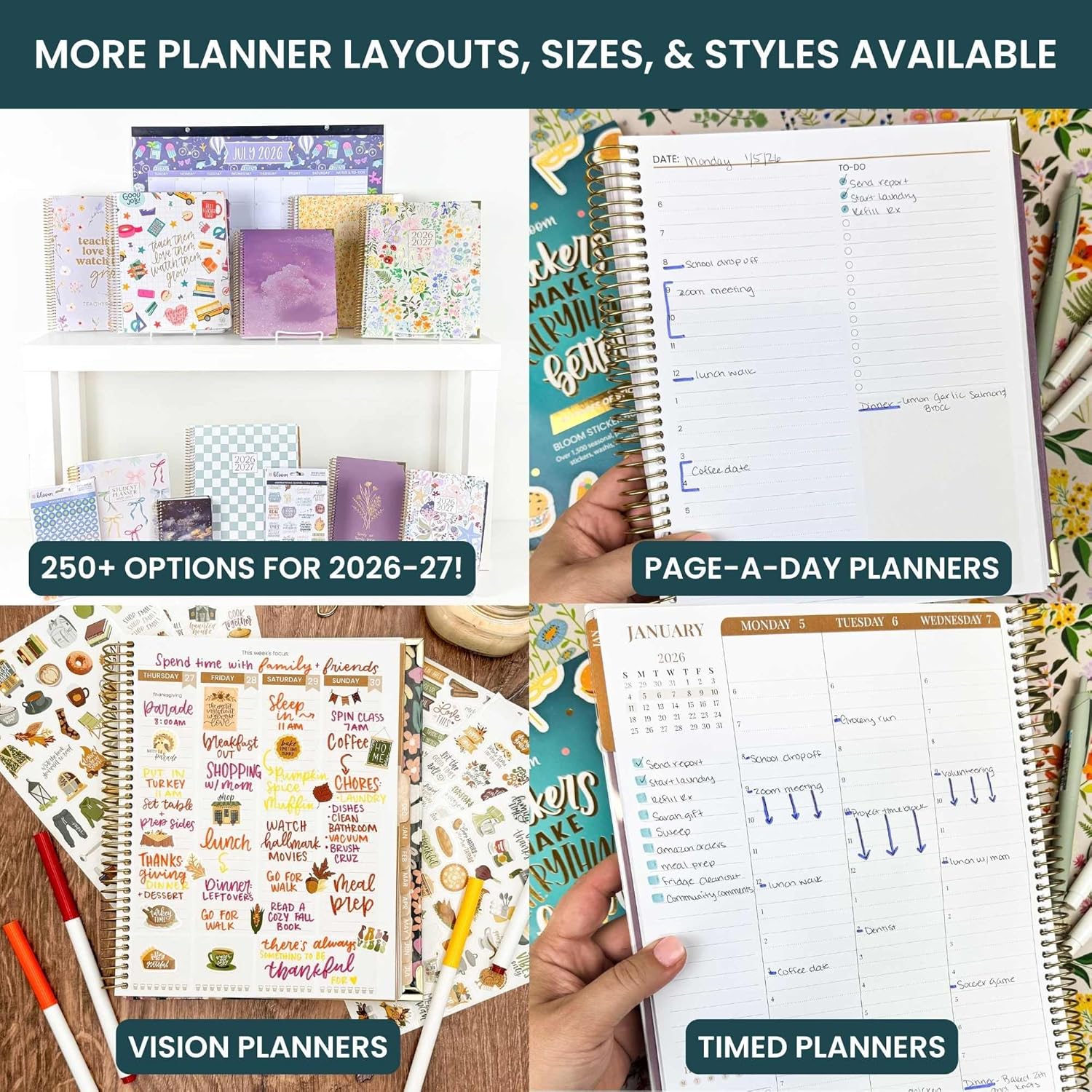 The video showcases the product in use.The video guides you through product setup.The video compares multiple products.The video shows the product being unpacked. bloom 2026-27 8.5″ x 11″ Softcover Planners Merchant Video