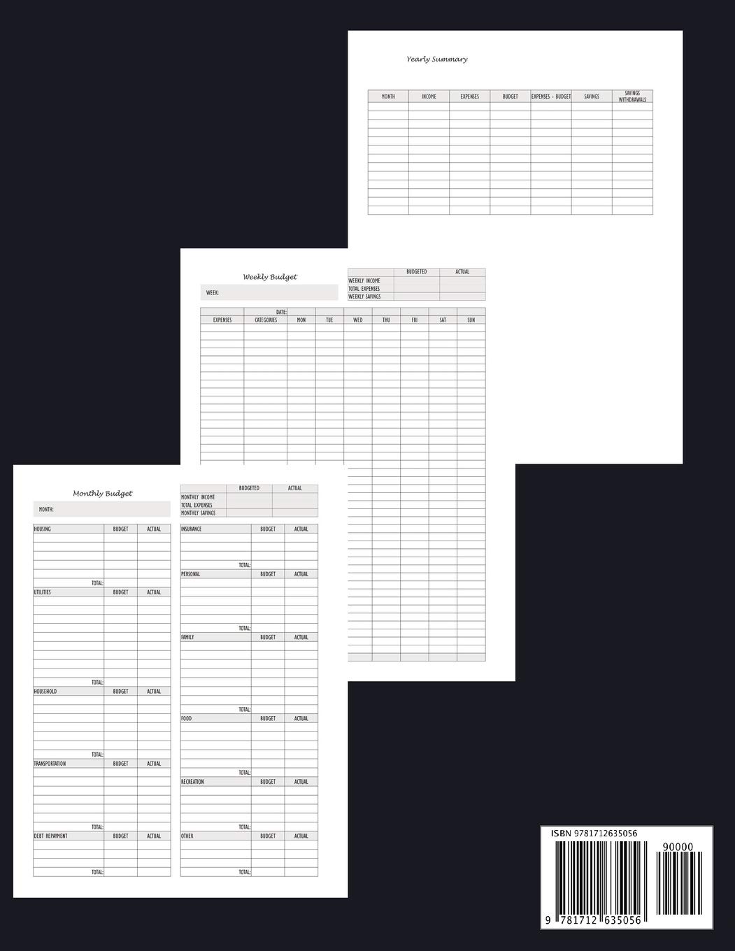Weekly Budget (weekly tracker with categories)54 weeks (weekly budget journal)Monthly Budget (monthly tracker with categories)14 months (monthly budget journal)Yearly SummarySpace to record income and savingsSize 8.5″ x 11″Undated