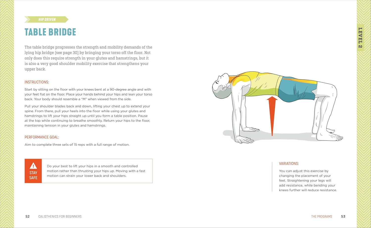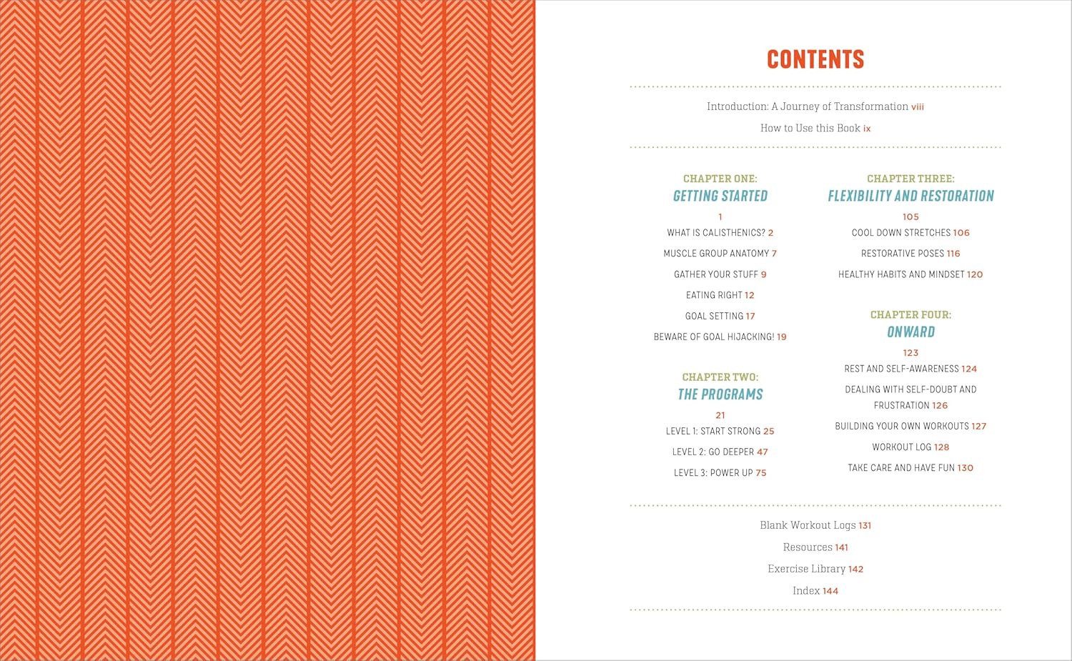 Training for all levels―Endlessly adjustable and customizable calisthenics workouts meet you where you are and serve your unique fitness goals.Full-body workouts―This complete, efficient approach to fitness works your whole body with a series of simple movement patterns.Variety, versatility, and fun―More than 35 dynamic exercises featuring the progressions, modifications, and variations you need to keep it interesting, challenging, and engaging.