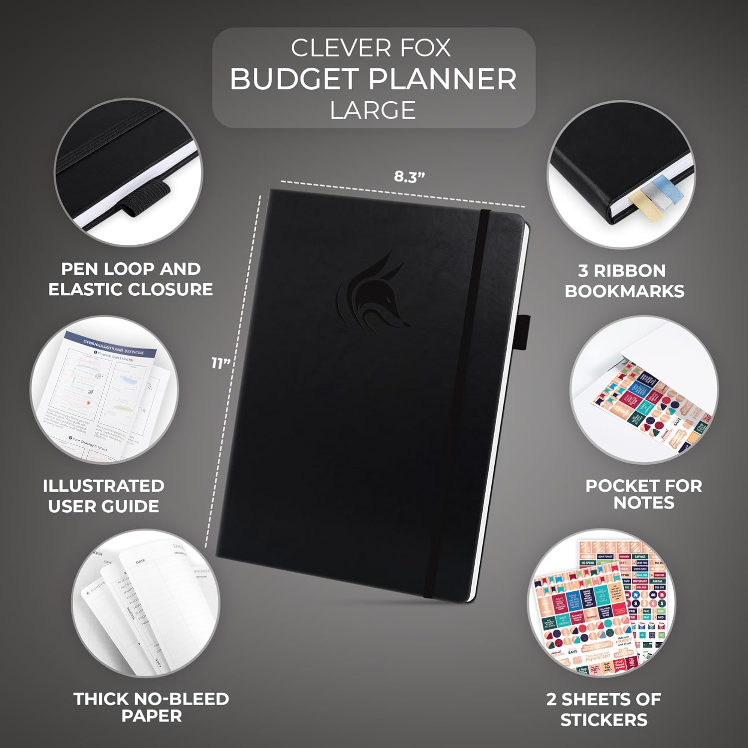 Clever Fox Budget Planner Large – Expense Tracker Notebook. Monthly Budgeting & Bill Organizer, Finance Logbook & Accounts Book, A4 (Black)