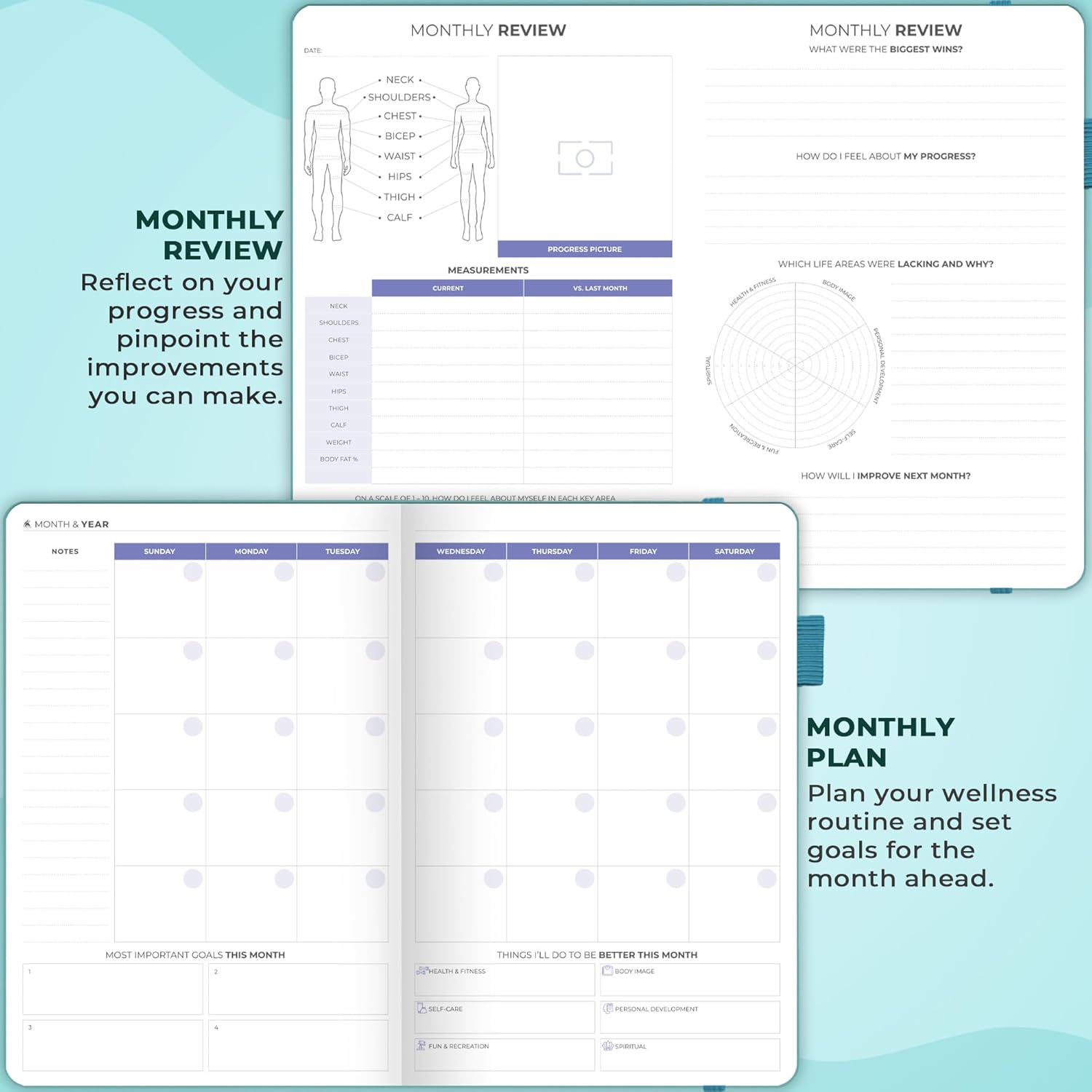 PLAN, ACHIEVE, REFLECT, REPEAT: This fitness and nutrition journal helps you set big goals, break them into monthly milestones and work on them consistently. At the end of each month, you will complete a monthly review to reflect on your progress.