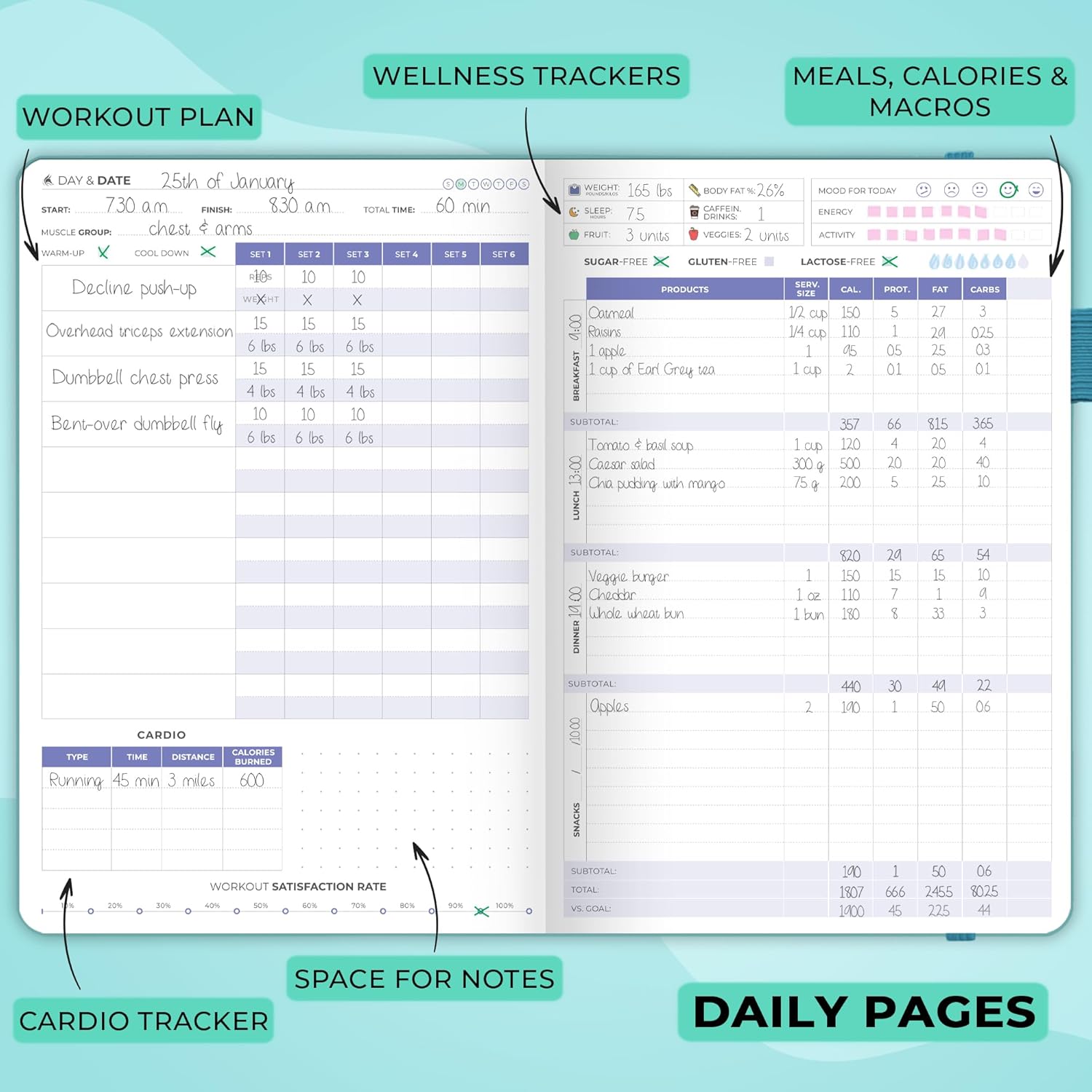 60-DAY SATISFACTION GUARANTEE: If you aren’t satisfied with your food & workout journal for women, we want to hear about any issues you have with fitness log book. Reach out to us about your workout planner for women, so we can provide a solution.
