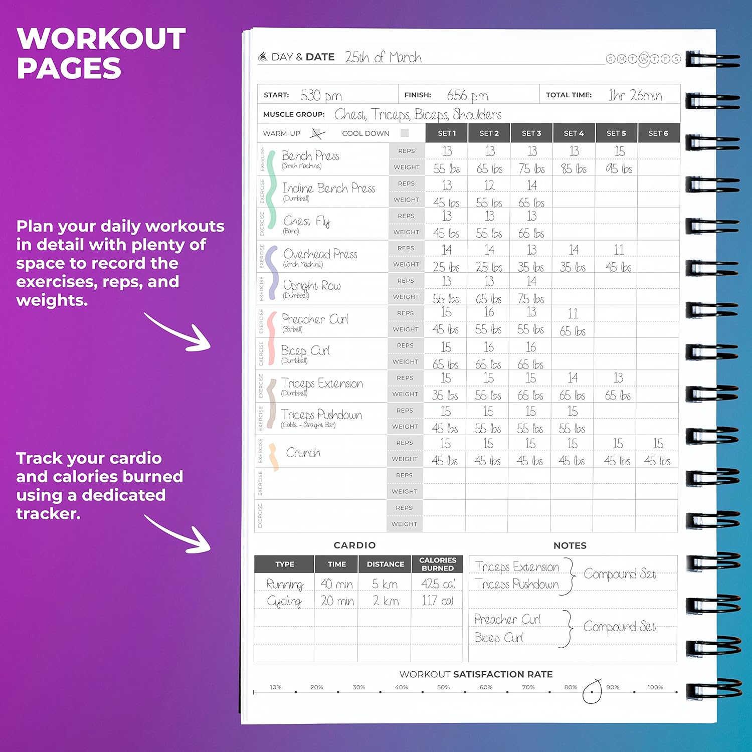 CREATE AN ACTION PLAN TO REACH YOUR FITNESS GOALS: Begin using your workout notebook by setting your fitness goals and planning your workout calendar. Use a dedicated tracker to monitor your weekly progress on your goals.