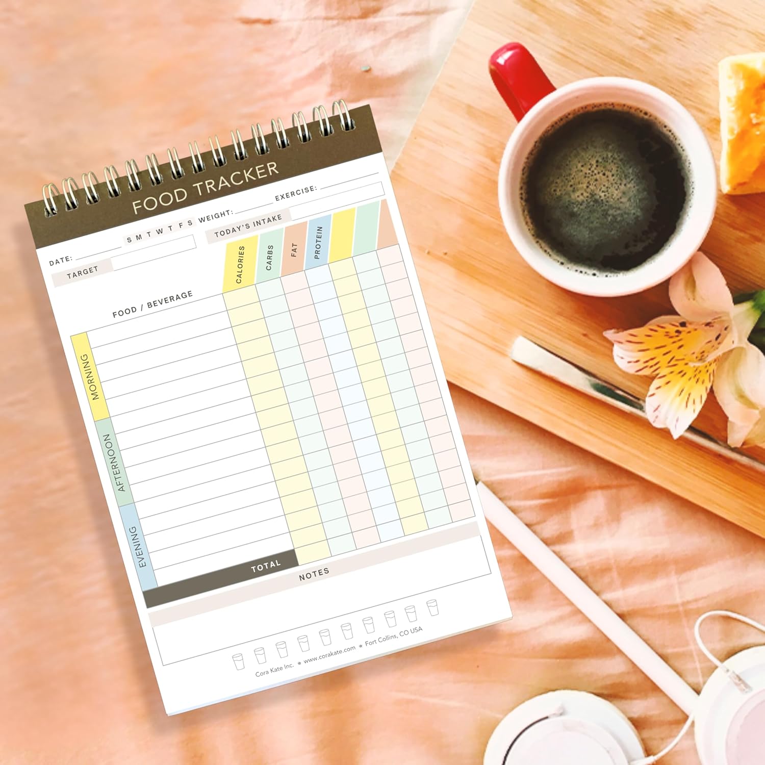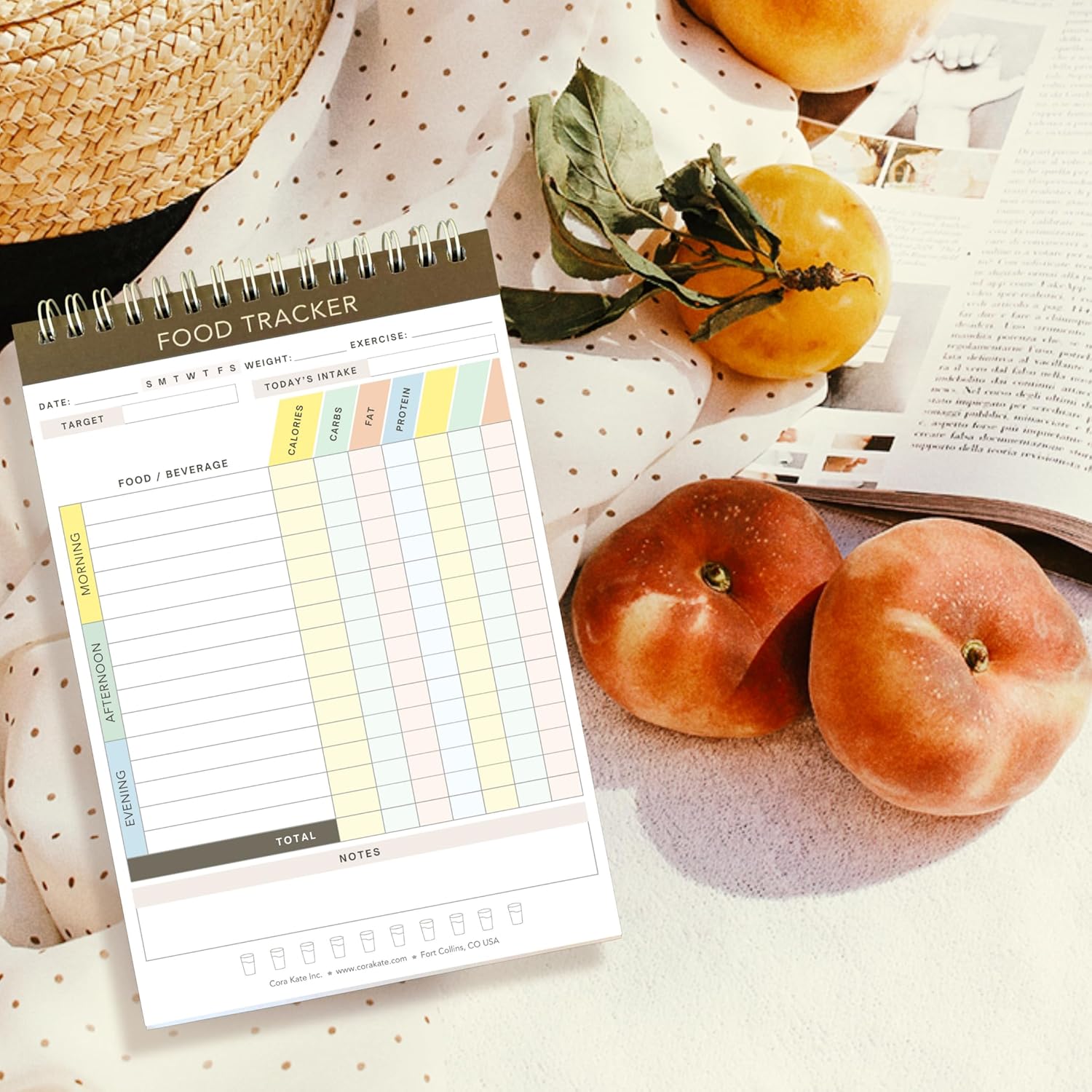 The Cora Kate food tracker journal invites you to dive deep into your eating habits, offering a clear, focused canvas to document your daily intake, track nutritional values, and reflect on your dietary choices. This journal is your roadmap to a healthier lifestyle, designed not only to track what you eat but to understand how food affects your body and mood.