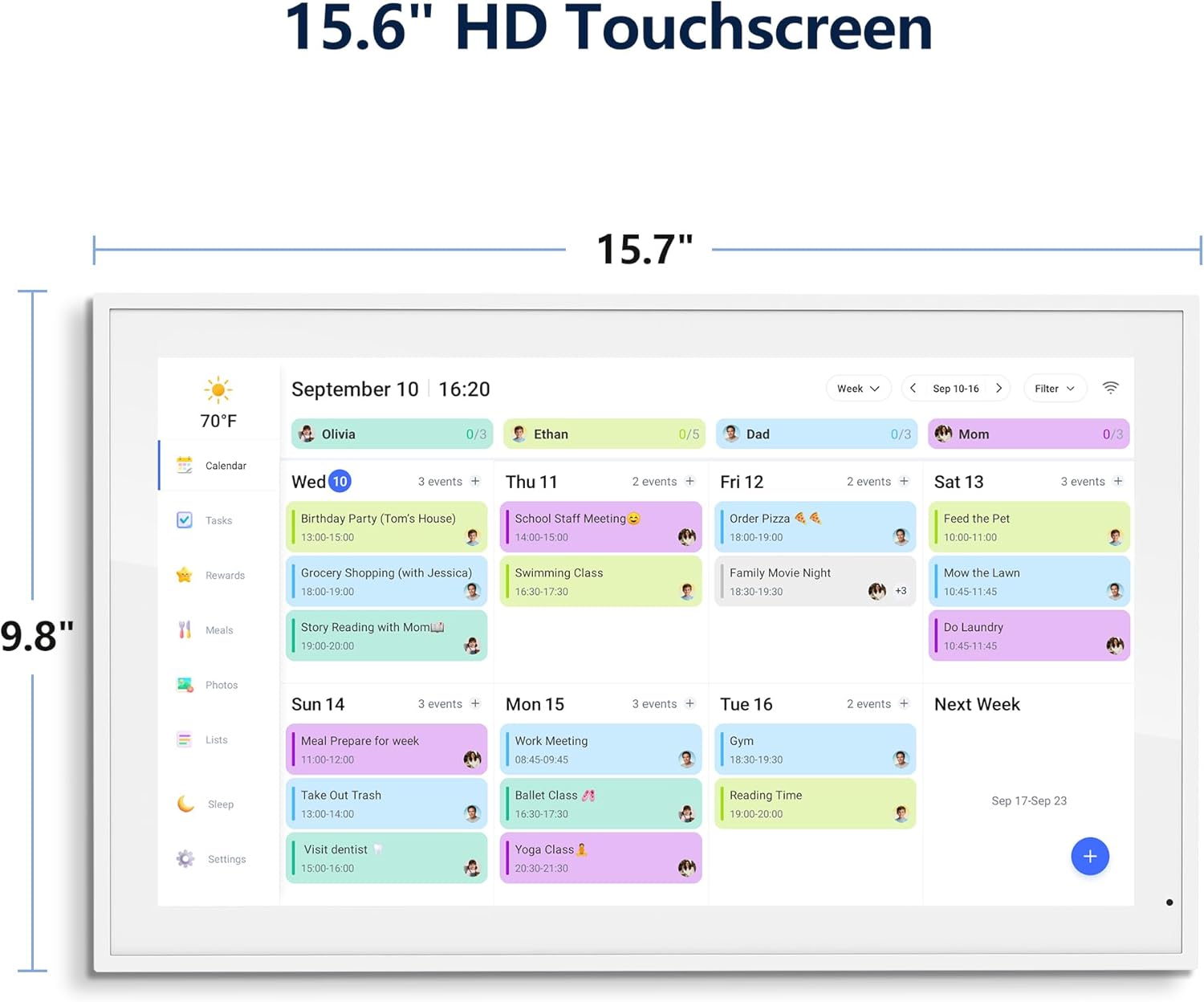 Interactive Task Chart & Meal Plans: Turn routines and to-do’s into opportunities for kids to earn stars and unlock custom rewards, keeping them engaged and motivated. Display weekly meal plans, no more “What’s for dinner?” . Take the guesswork out of mealtime with adedicated meal schedule that everyone can see.