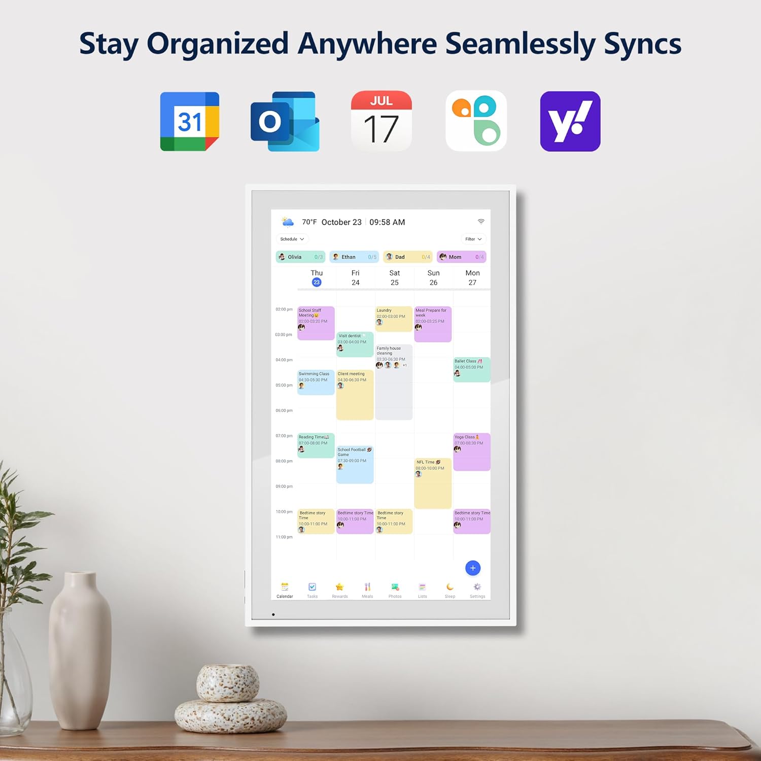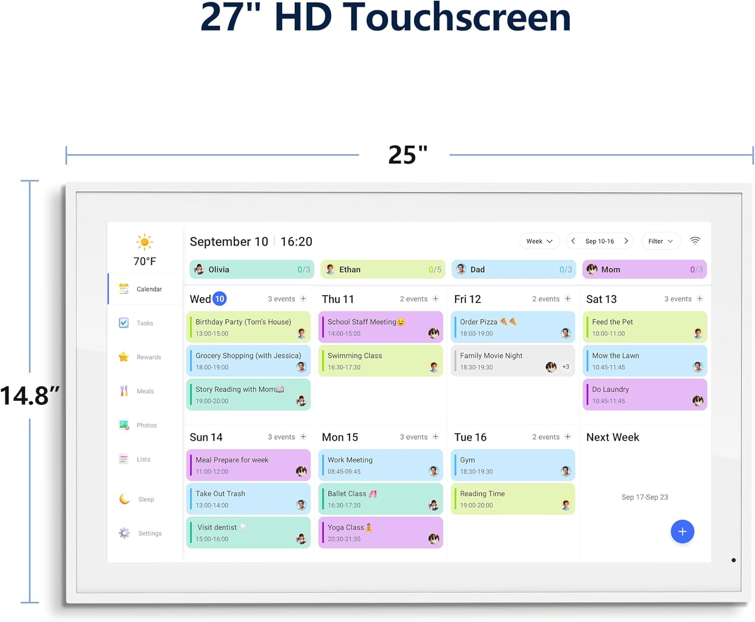 Interactive Task Chart & Meal Plans: Turn routines and to-do’s into opportunities for kids to earn stars and unlock custom rewards, keeping them engaged and motivated. Display weekly meal plans, no more “What’s for dinner?” . Take the guesswork out of mealtime with adedicated meal schedule that everyone can see.