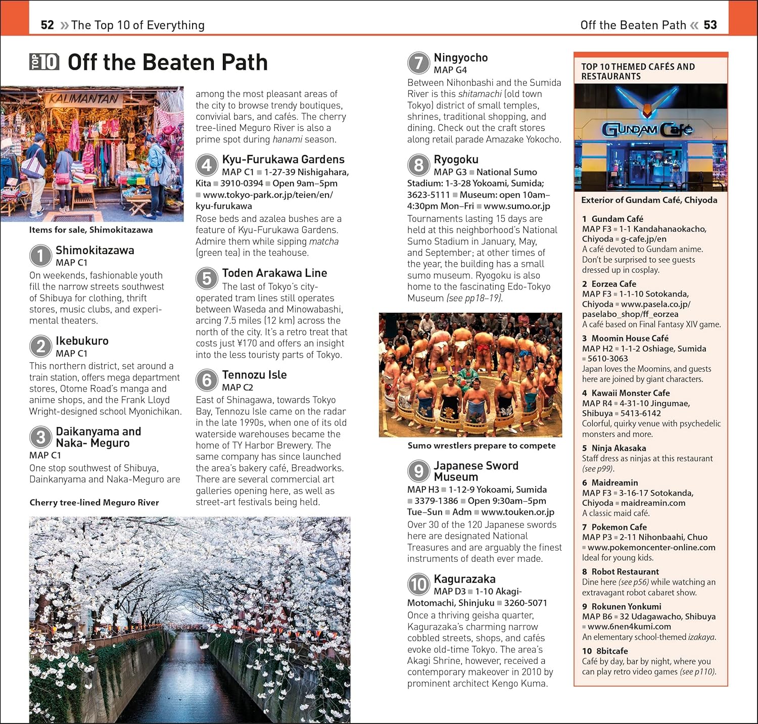 – Tokyo’s most interesting areas, with the best places for sightseeing, food and drink, and shopping.
