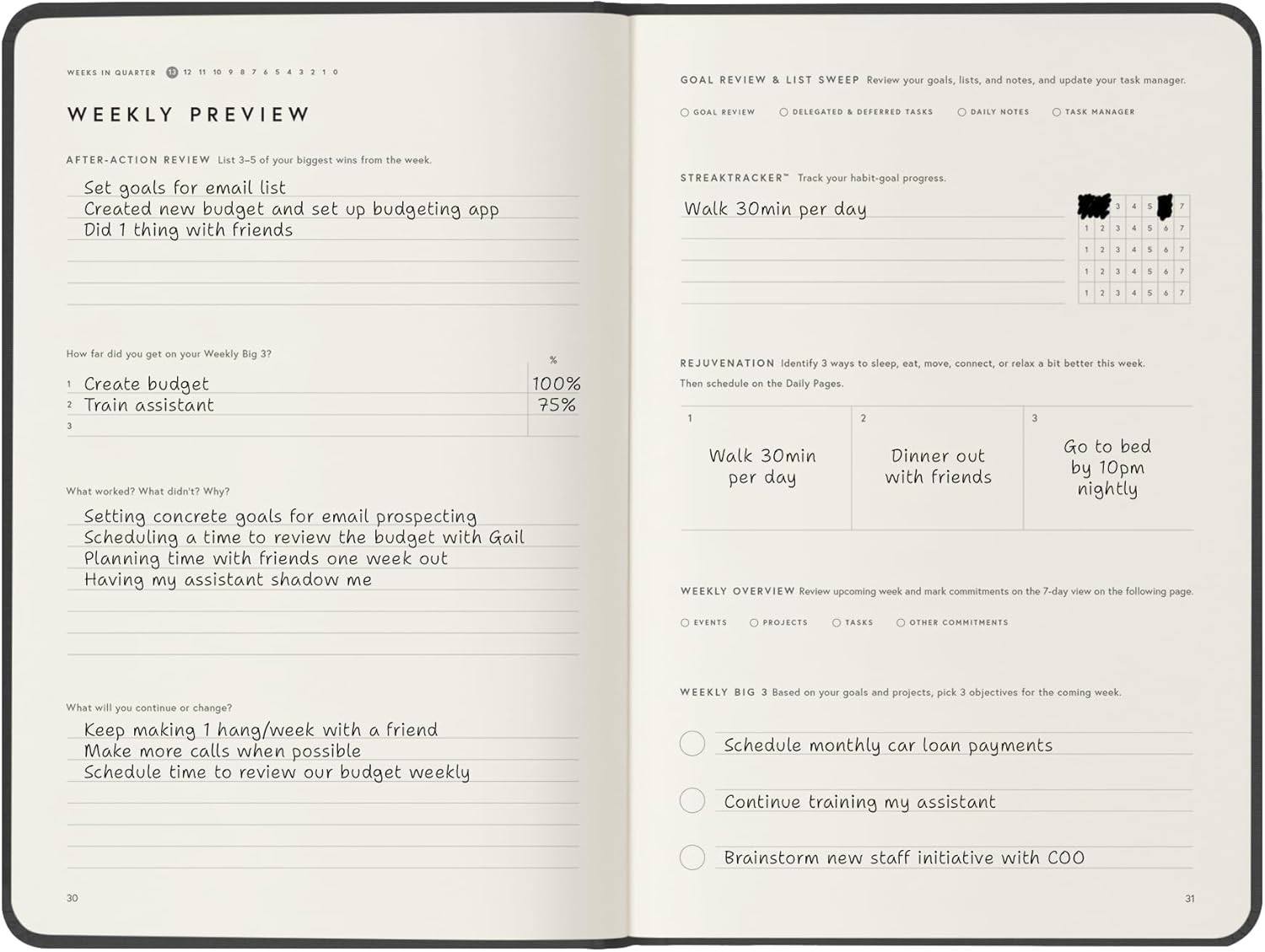 📈 TRACK YOUR PROGRESS & STAY FOCUSED – Utilize the weekly and quarterly review templates, alongside daily task lists, to seamlessly bridge the gap between your everyday actions and your long-term ambitions. With your priorities consistently in sight, you won’t be derailed by life’s daily demands. The Full Focus Planner empowers you to filter through the noise of the urgent and focus on what truly matters, ensuring steady progress toward your most important goals.