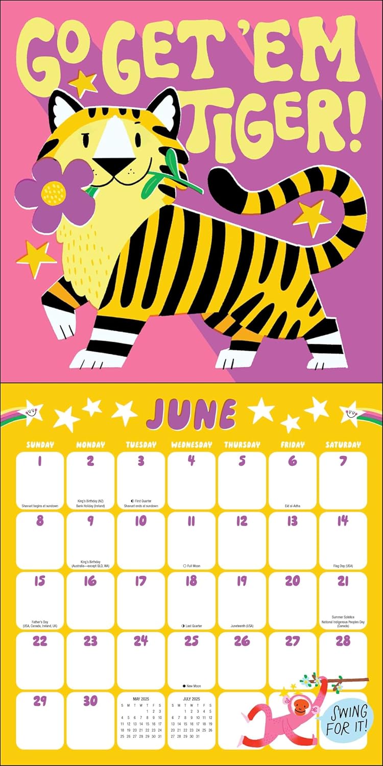 Chock full of rousing puns alongside joyful, energetic illustrations, this heartwarming, uplifting 12-month calendar from Hello!Lucky will make 2025 a breeze. You’re toadally awesome!, exclaims the frog. Nuttin’s gonna stop you, cheers the squirrel. Just remember, no matter what, time flies when you’re having pun!