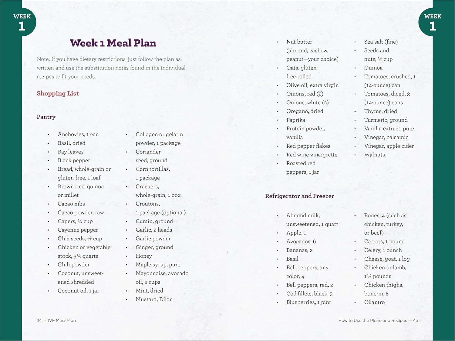 IVF Meal Plan includes: