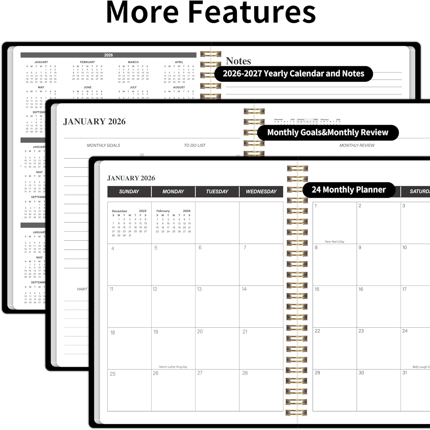 Two-Year Monthly Planner (Jan 2026 – Dec 2027):A classic 7.5″ x 10″ calendar spanning 24 months, helping you efficiently schedule and track long-term goals, events, and daily tasks—perfect for seamless time management.