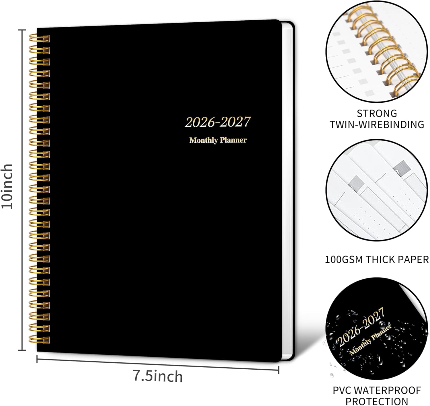 Waterproof & Durable Hardcover:A sturdy water-resistant cover protects pages from spills, wear, and tear, keeping your planner intact even with daily use.