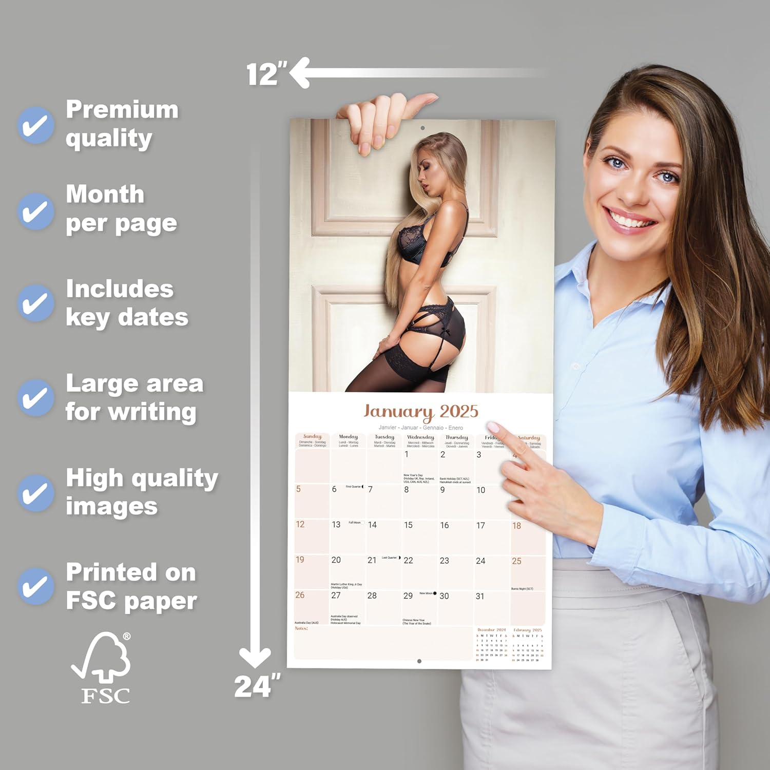 Lingerie Calendar 2025 | Square Sexy Girls Glamour Wall Calendar – 16 Month
