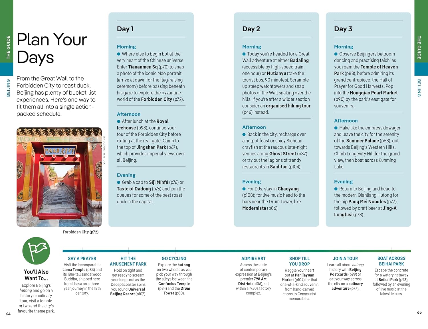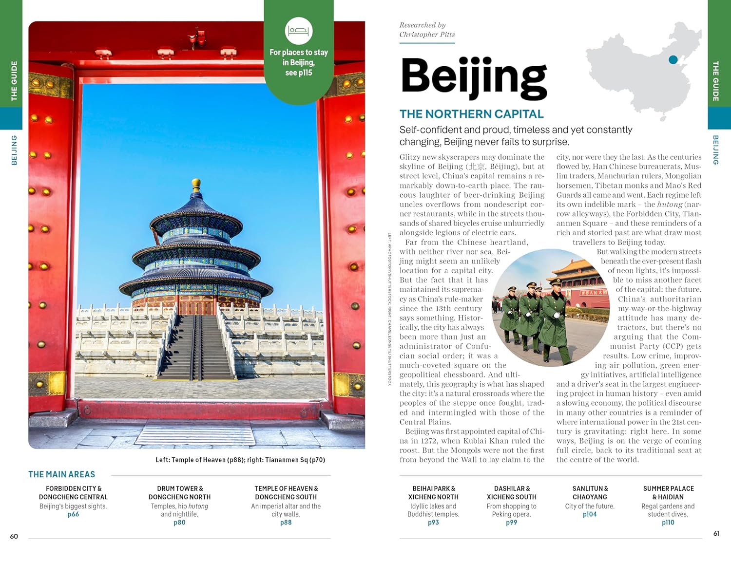 Our classic guidebook format contains the most comprehensive level of information for planning multi-week tripsAll-new structure and design that’s easy to use so you can navigate China effortlesslyExciting itineraries help you create your perfect adventure with suggestions for extended journeys, day trips, walking tours and activity-led excursionsExpert local recommendations on eating, drinking, nightlife, shopping, accommodation, festivals, when to go and moreVibrant photography and maps including a pull-out map of BeijingGet fresh takes on must-visit sights from Tiananmen Square to Summer Palace and the Bund PromenadeEssential information toolkit containing tips on arriving, transport, local etiquette, using money, LGBTIQ+ travel advice, useful words and phrases, accessibility and responsible travelConnect with Chinese culturethrough stories that delve deep into local life, history and traditionsCovers: Beijing, North China, Northeast China, Shanghai, East China, Central China, Hong Kong & Macau, South China, Southwest China, Northwest China, Tibet