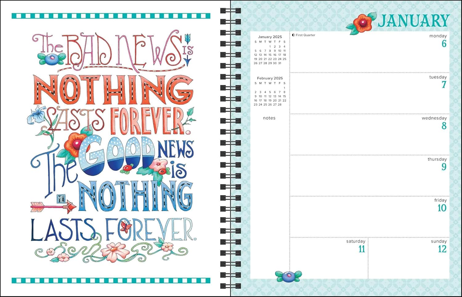 Do you have a “motto” or saying that defines you or how you live your life? Over the years, Mary Engelbreit has illustrated many of her own witty, inspiring, and motivating mottos and they’re featured in this new monthly/weekly planner.