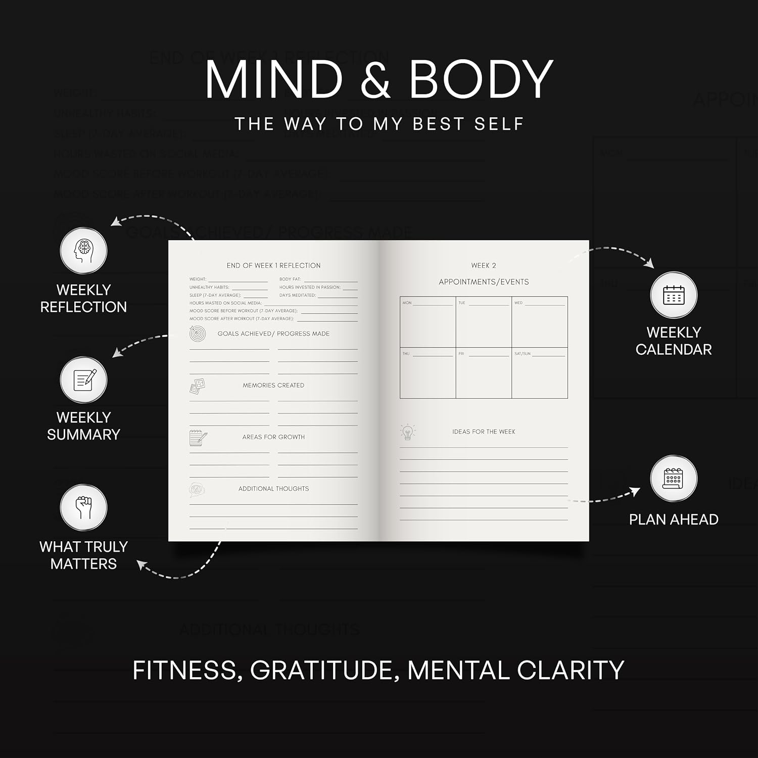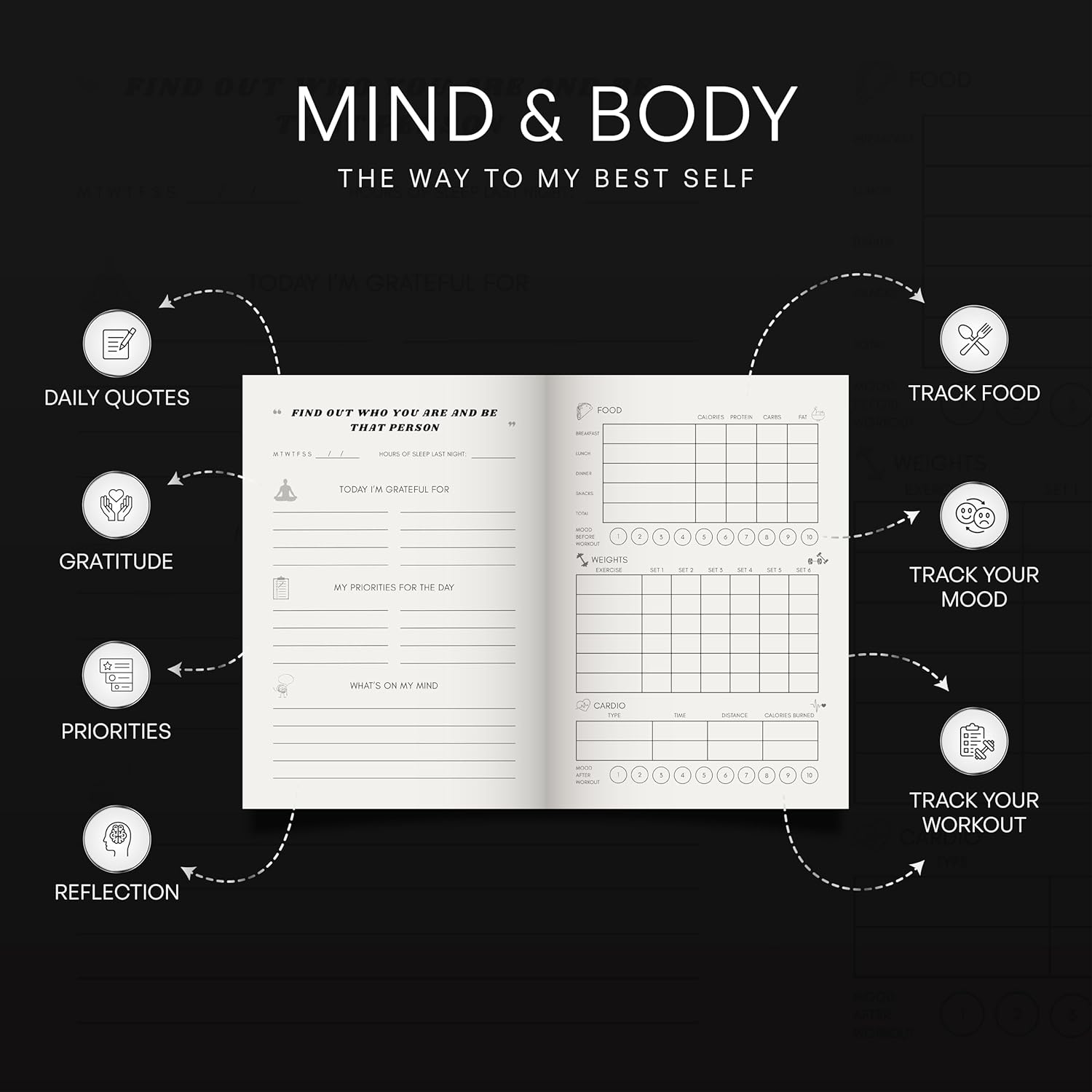 FITNESS & HEALTH TRACKING: Stay consistent and accountable with dedicated sections to track workouts, record exercises, log meals, and monitor mood and energy levels. Build healthier habits, improve performance, and see your progress clearly week after week.
