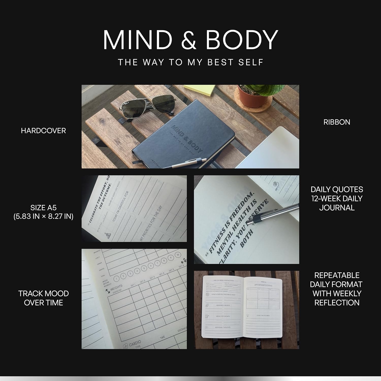 PREMIUM QUALITY & DESIGN: Crafted for long-term personal growth, this journal features a leather hardcover and a clean, minimal layout that fits seamlessly into your daily routine—at home and at the gym.