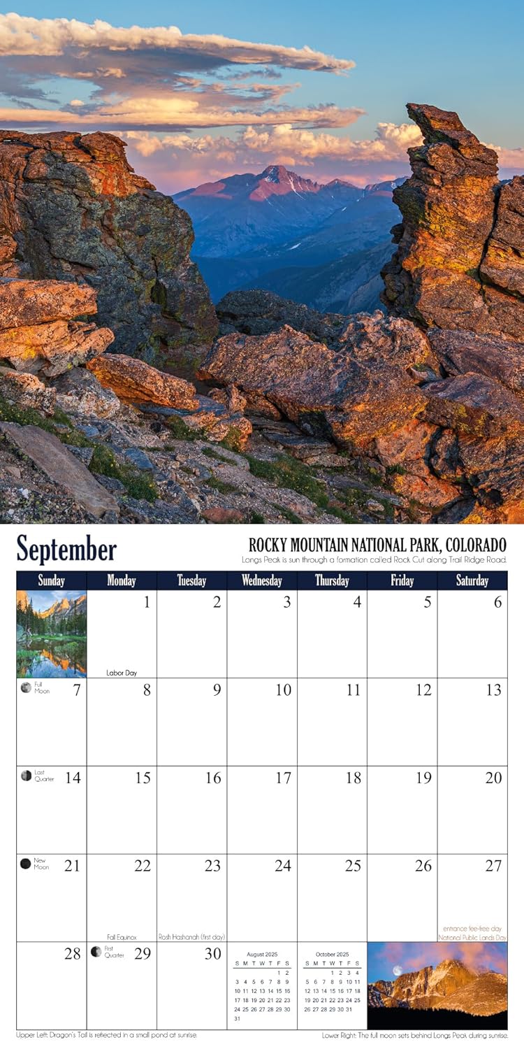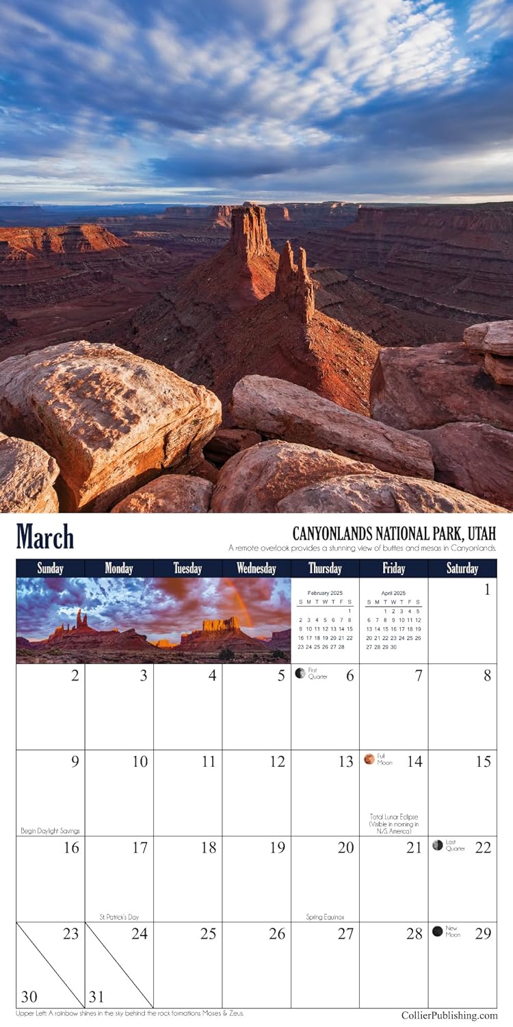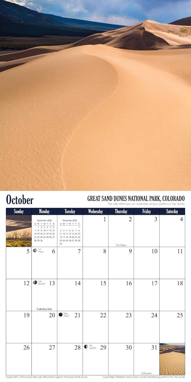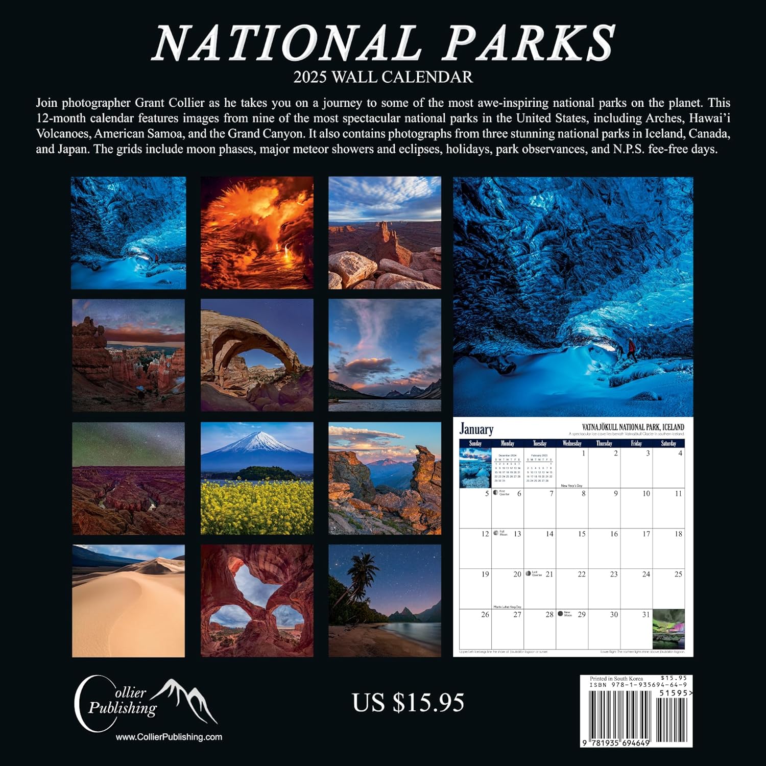 Embark on a breathtaking adventure through the world’s most stunning national parks with photographer Grant Collier. This 12-month calendar showcases spectacular images from nine iconic U.S. parks, including the Grand Canyon, Arches, Hawaiʻi Volcanoes, and Rocky Mountain. The journey extends to three remarkable parks abroad in Iceland, Canada, and Japan. Complete with moon phases, meteor shower dates, holidays, and NPS fee-free days, this calendar is a must-have for nature enthusiasts.