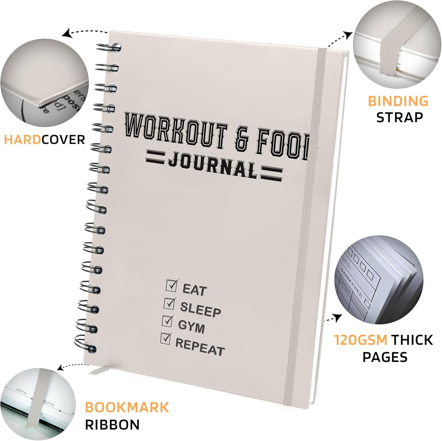 Nextnoid Hardcover Fitness & Food Journal – Workout & Meal Planner Notebook for Women & Men – A5 Sturdy Food Tracker Journal to Track Diet, Gym & Home Workouts – Beige