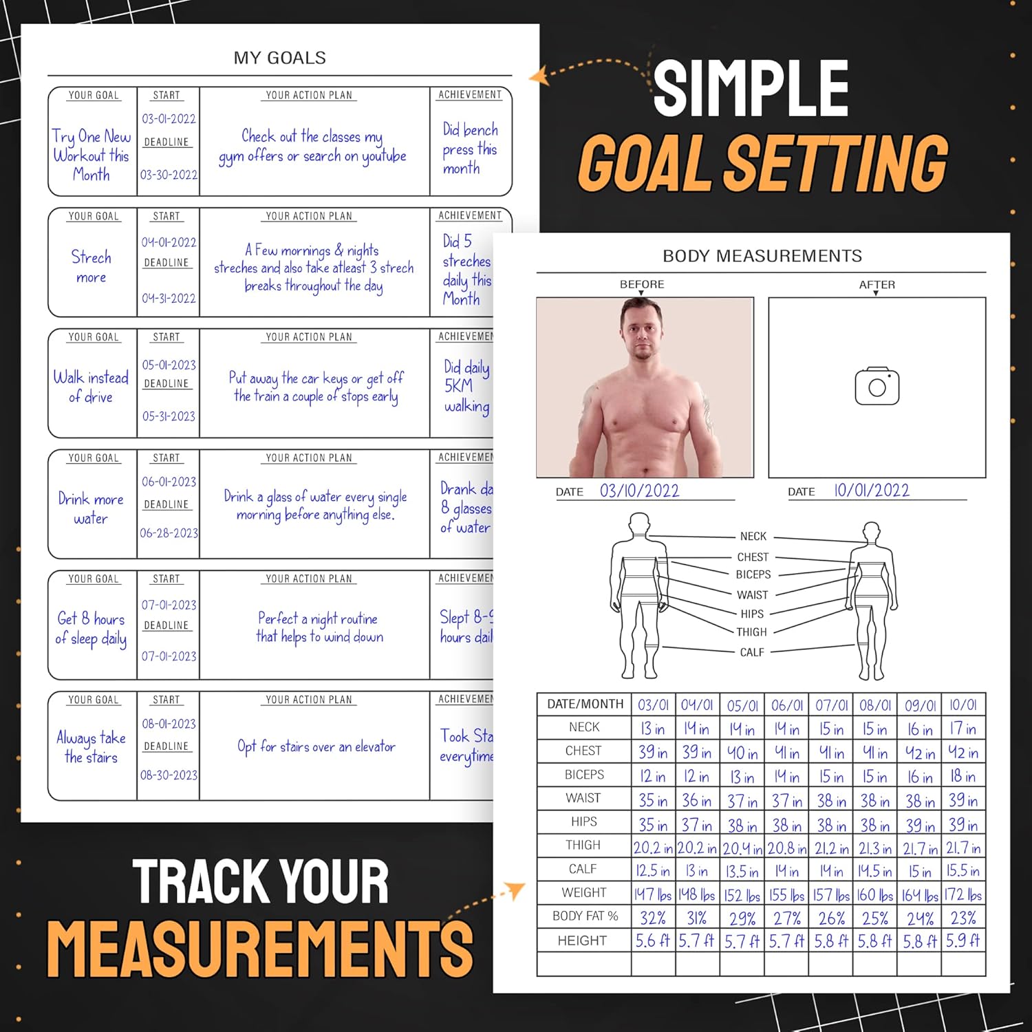 SIMPLE AND CLEAR – Setting yourself up for success has never been easier! Our personal workout book takes the thought and effort out of staying disciplined and accountable with a clear incremental progress system, bigger fonts for easy reading and enough space to jot down everything.