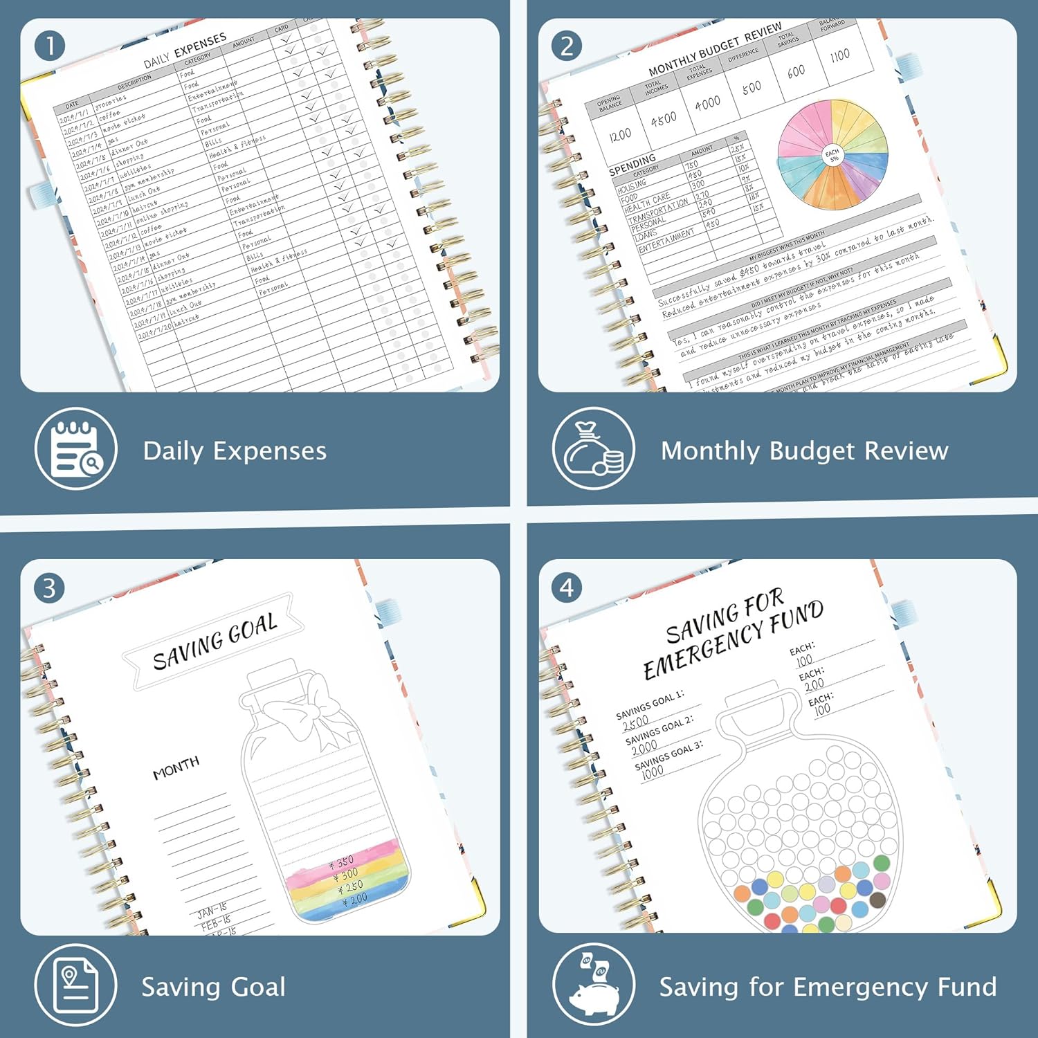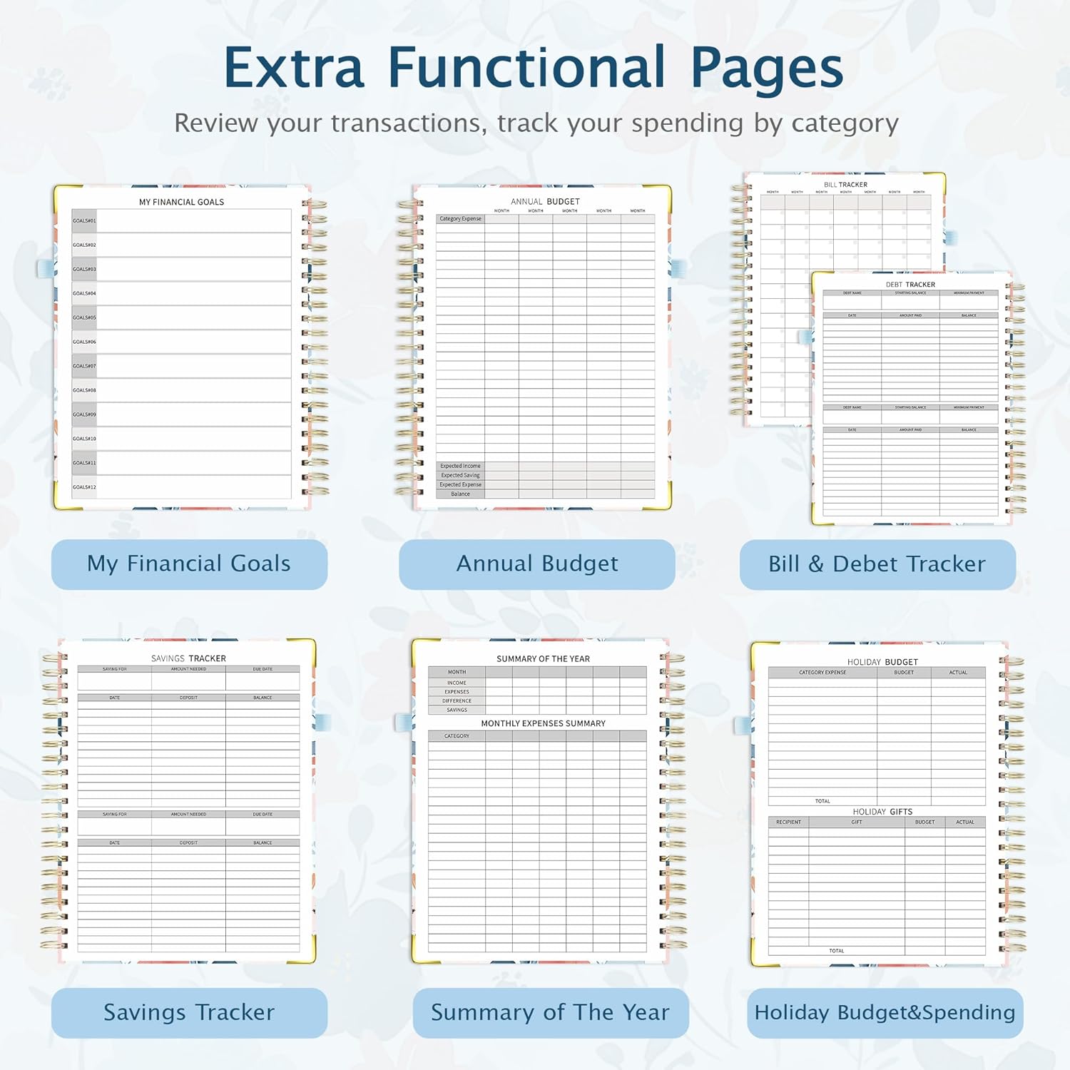 Track every penny with durable hardboard covers & whimsical floral patterns.