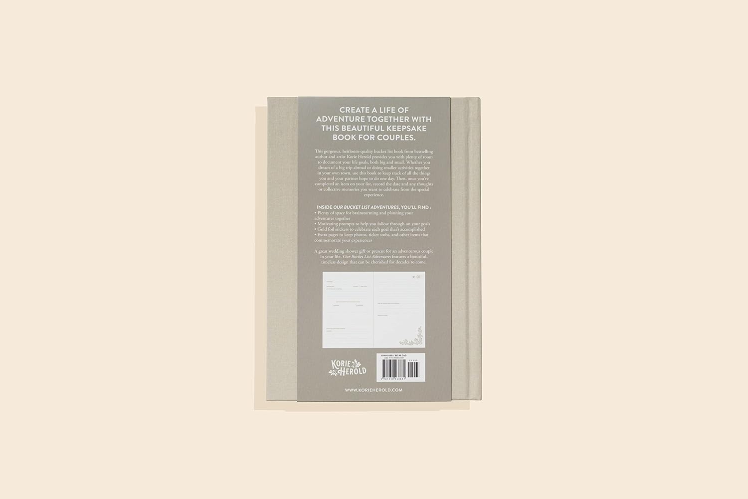 Sturdy binding and a durable cloth cover A layflat design that makes it easy to write in Gold foil stickers to celebrate each goal that’s accomplished Hand-drawn illustrations and tasteful neutral colors that make this journal great for you or any couple on your gift list