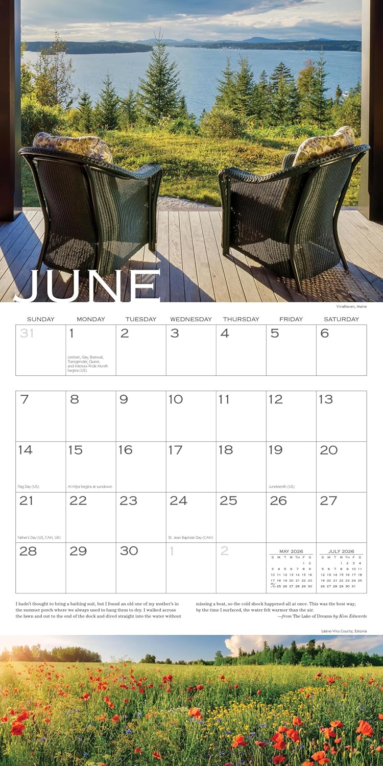 KICK BACK AND RELAX: Settle in with these tranquil porches, verandas, patios, and terraces. Each month brings a different locale and an evocative porch-themed quote! THE GIFT OF A DEEP BREATH: Great for travelers, home design and décor fans, nature-lovers, and anyone who needs a little quiet time. NOW PLASTIC-FREE!: Workman wall calendars are completely plastic-free! Now printed with an extended paper flap closed with a fully recyclable seal—no more shrink-wrap!