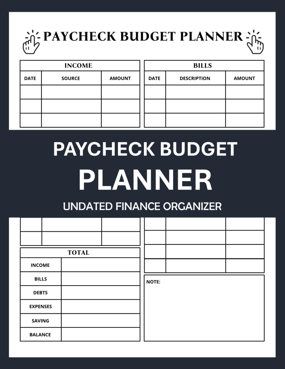 Never worry about overspending again. With this paycheck budget planner. You can manage money by tracking and monitoring weekly and monthly spending. You can also save money as well as cut down on excess spending. This planner allows you to breakdown your finances in a way that fits you and your needs.