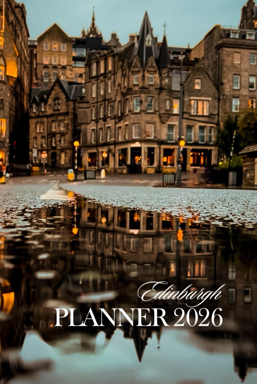 What’s Inside?January 2026 – December 2026Weekly Planner: Spacious Week-to-View layout (Sunday start) across two pages with plenty of room for your daily schedule.Monthly Planner: Month-to-View spread for at-a-glance planning (Sunday start).Extra Features You’ll Love:A full 2026 calendar (with holidays for the UK, USA, Canada, and Australia).2 hand-drawn illustrations showcasing Edinburgh landmarks.Goals page to start the year with purpose.Vision board pages to dream big and stay inspired.Notes pages for thoughts, reminders, or journaling.My Contacts page to keep all your important details in one place.Why You’ll Love This PlannerPerfect 6 x 9-inch size (slightly larger than A5) – portable and practical.Soft glossy cover with a sleek, durable finish.185 pages thoughtfully designed to combine functionality with beauty.Perfect for:Staying organized at home, work, or school.Gifting to Edinburgh lovers, travelers, or art enthusiasts.Anyone who appreciates the charm and history of Scotland’s capital.