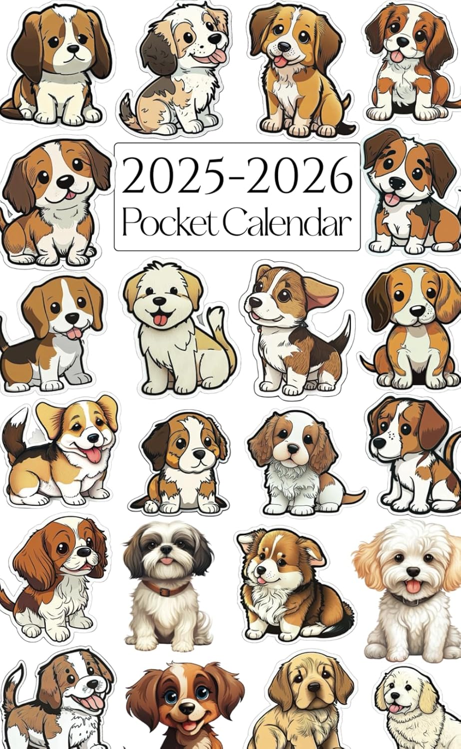 Pocket Calendar 2025-2026 for Purse: Small 2 Year Monthly Planner, 24 Months from January 2025 to December 2026, Dogs Cover.