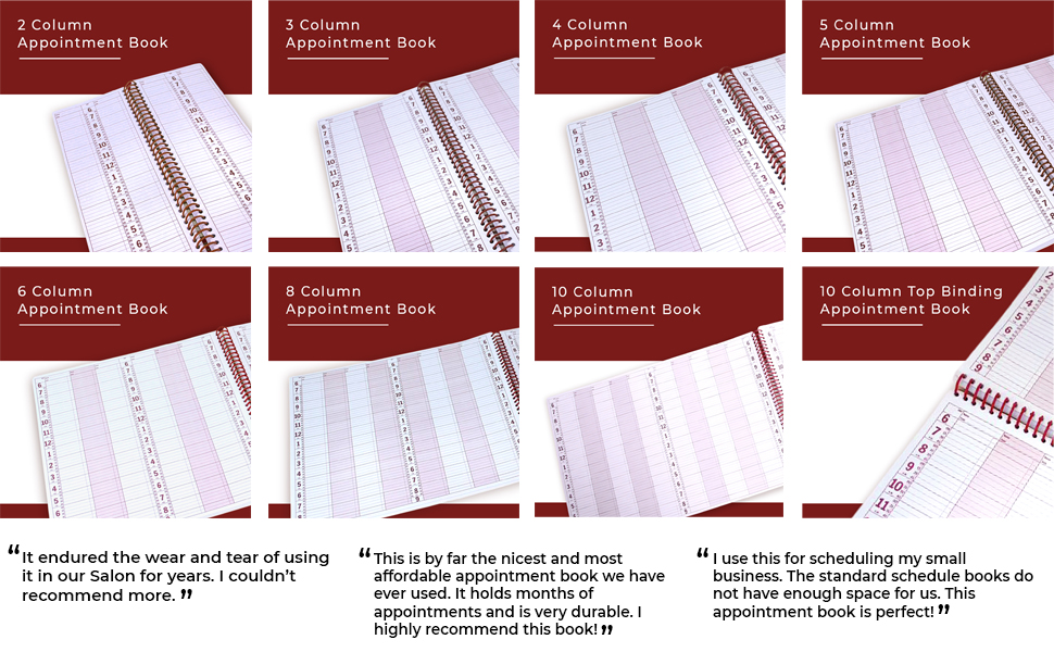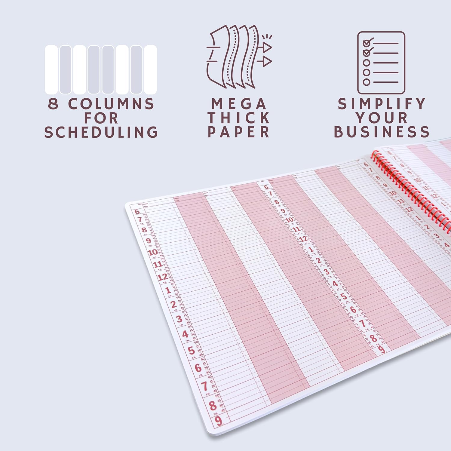 ENDLESS SPACE – This large daily appointment book for small businesses contains 200 pages (100 sheets) and 8 columns per page (opens to 16), for meeting notes, appointment scheduling, hourly planning and more