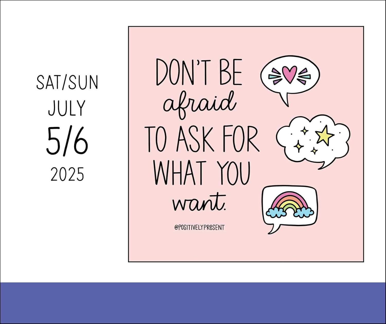 The pages of the Positively Present 2025 Day-to-Day Calendar: This Year Is Yours feature Dani DiPirro’s signature unique, vivid illustrations along with encouraging messages such as, “Let people be kind to you” and “This is your sign. Keep climbing.” Fans of @PositivelyPresent on social media and anyone seeking a daily dose of joy will appreciate these beautiful reminders of positivity, inspiration, and self-love.