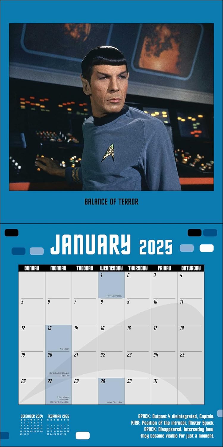 The officially licensed Star Trek™ 2025 Wall Calendar features twelve iconic moments and fan-favorite lines from classic episodes of The Original Series, a perfect gift for casual fans and die-hard Trekkers alike.