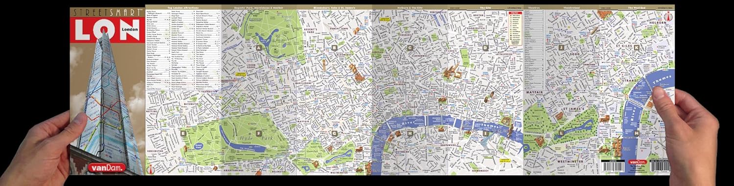 VanDam’s newly revised 2026 STREETSMART® LONDON Edition maps all top attractions including museums, monuments, architecture, hotels, shops and theaters plus the Tube at an immensely legible scale of 1:20,000 complete with 3-D building illustrations. Clear information design allows you to read the map from three feet away and has earned VanDam maps a place in the MoMA Collection. The map is film-laminated, accordion folded and pocket size.