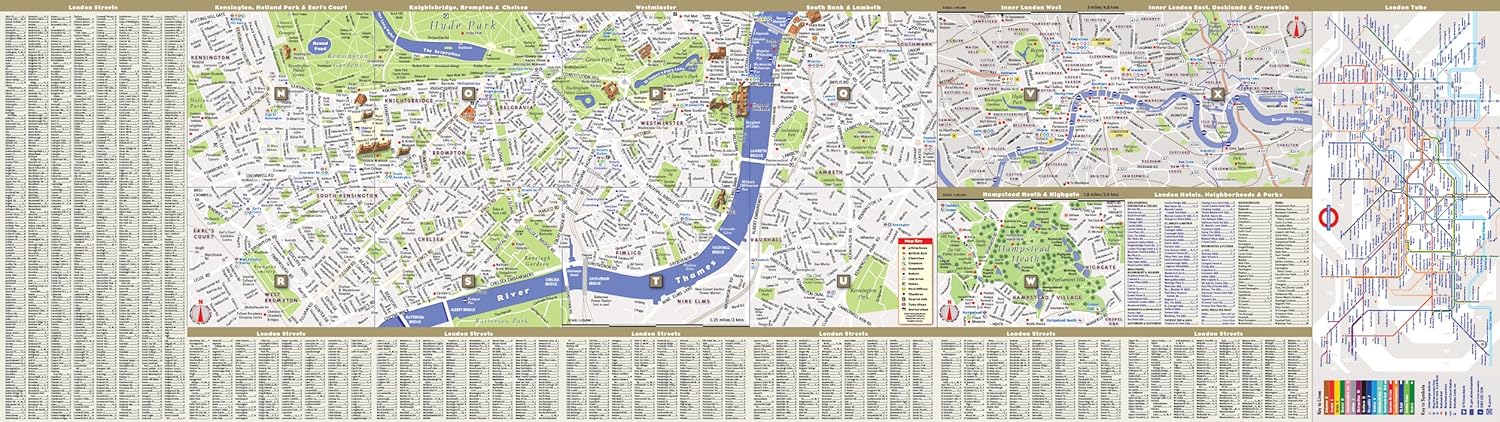 Coverage: London City Street Map 1:20,000; The West End & Theatreland Detail Map: 1:14,000; Hampstead Heath Detail map: 1:29,000; Inner London Overview Map: 1:95,000; London Tube Map Dimensions: 4 x 9 folded, 9 x 36 unfolded, fits into shirt pocket or purse.