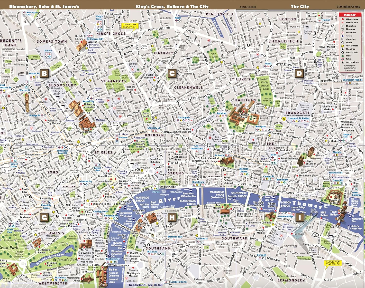 STREETSMART® LONDON includes a Central London Map plus a stunning dimensional detail of The West End so you can do historic walks with the maze of Theatreland clearly mapped. The map scale of 1:14,000 makes you feel you are there with 3D buildings illustrations as your compass. All Tube stops are marked by their respective line in context right on the main map and on a separate Tube overview so you know both the local details and understand the larger system.