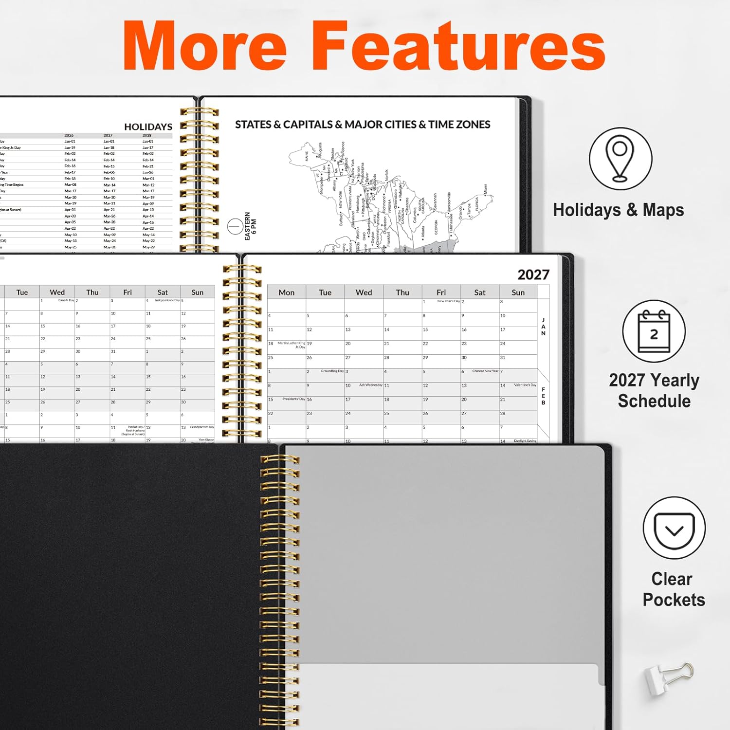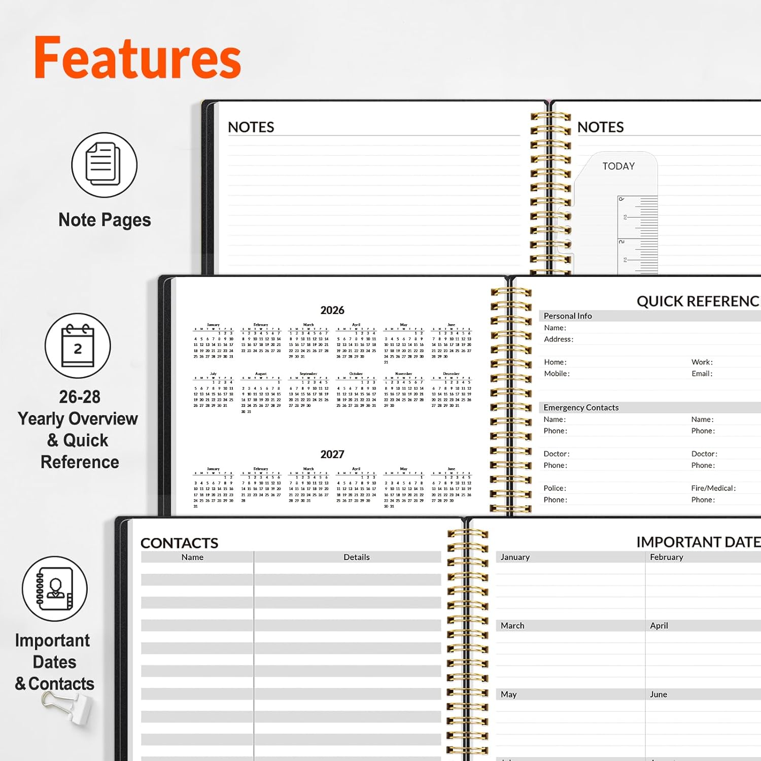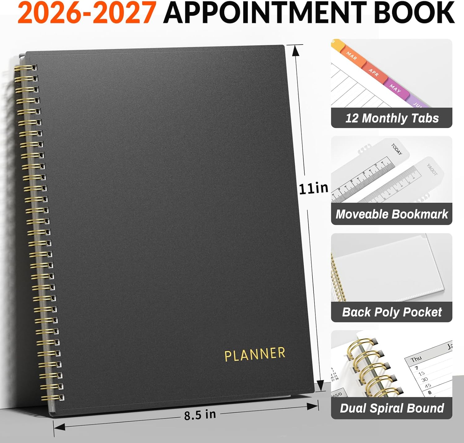 2026-2027 Professional Planner: Cover from July 2026 to June 2027, Features 12 months of weekly and monthly pages, 2 additional monthly pages (May 2026 – June 2026) are included for all your planning and scheduling needs.Featuring durable twin-wire binding, it lays completely flat for easy use and measures the standard 8.5″ x 11″.