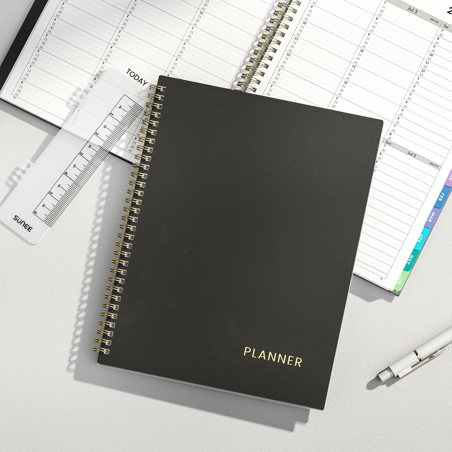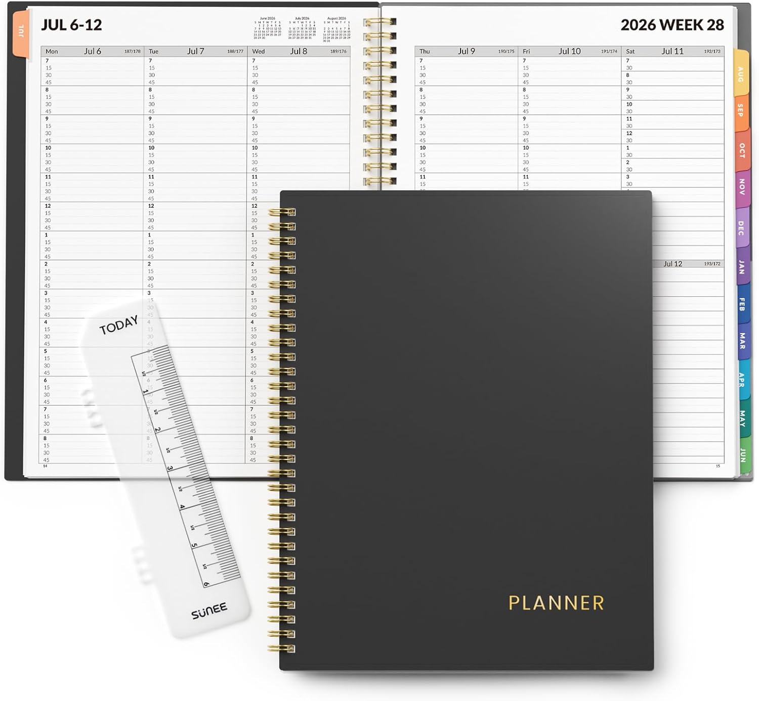 SUNEE 2026-2027 Appointment Book, Quarter-Hourly, Weekly & Monthly – from July 2026 to June 2027, 8.5″x11″ Academic Planner, Flexible Cover, Note Pages, Bookmark, Spiral Binding, Black